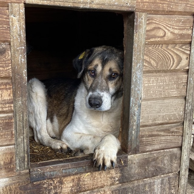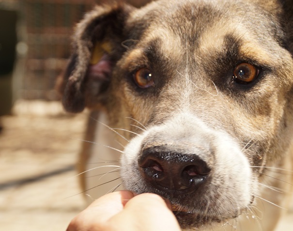 10 Jahre ist unser ANJO nun schon alt, mindestens 6 Jahre davon sitzt er im Shelter… Er wirkte sehr müde und resigniert. ANJO kam vorsichtig auf uns zu und nahm die Leckerlie mutig direkt aus der Hand, dabei konnten wir ihn vorsichtig an der Schnauze berühren. ANJO benötigt Menschen mit viel Erfahrung im Umgang mit unsicheren Hunden, kennt er ja nur das Shelter und ist dort alt geworden. In seinem gemischten Rudel zeigte er sich verträglich. Ein souveräner Ersthund würde ihm die Eingewöhnung sicherlich erleichtern.