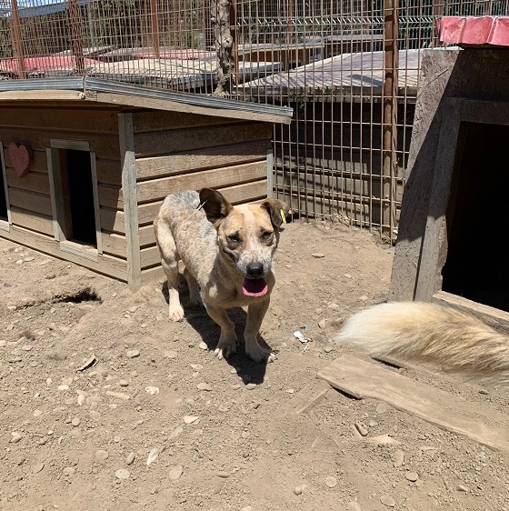 Der kleine, niedliche ANJU zeigte sich bei unserem Besuch sehr freundlich und interessiert. Leider ärgerte ihn eine große Zecke am Auge, die er hoffentlich schnell wieder losgeworden ist. Gern kam er bis zur Hand, nahm Leckerlie und schnupperte neugierig an uns. Auch kurze Berührungen an der Schnute waren möglich, doch für mehr Nähe fehlt ihm noch das letzte Bisschen Mut bzw. einfach die Erfahrung im direkten Umgang mit uns Menschen. In einer ruhigen Umgebung würde ANJU sicher nach etwas Eingewöhnungszeit ganz auftauen und Vertrauen fassen können. Wir suchen erfahrene und liebevolle Menschen, die ihm dabei helfen und ihn an die Pfote nehmen. Mit den anderen Hunden zeigt er sich durchgehend verträglich, sodass er sicher sehr von einem aufgeschlossenen Ersthund, an dem er sich orientieren kann, profitieren würde.