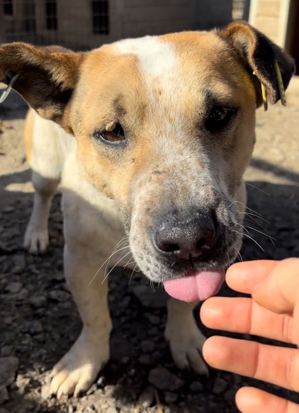 vorsichtig an der Schnauze anfassbar, nahm Leckerchen aus der Hand