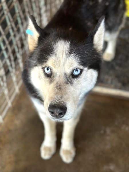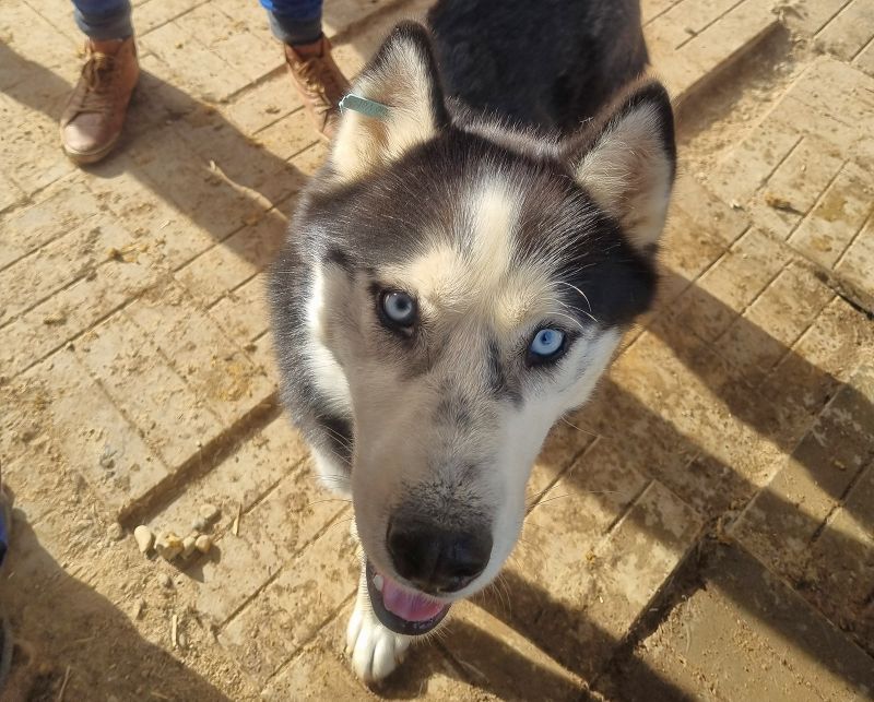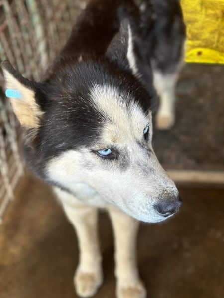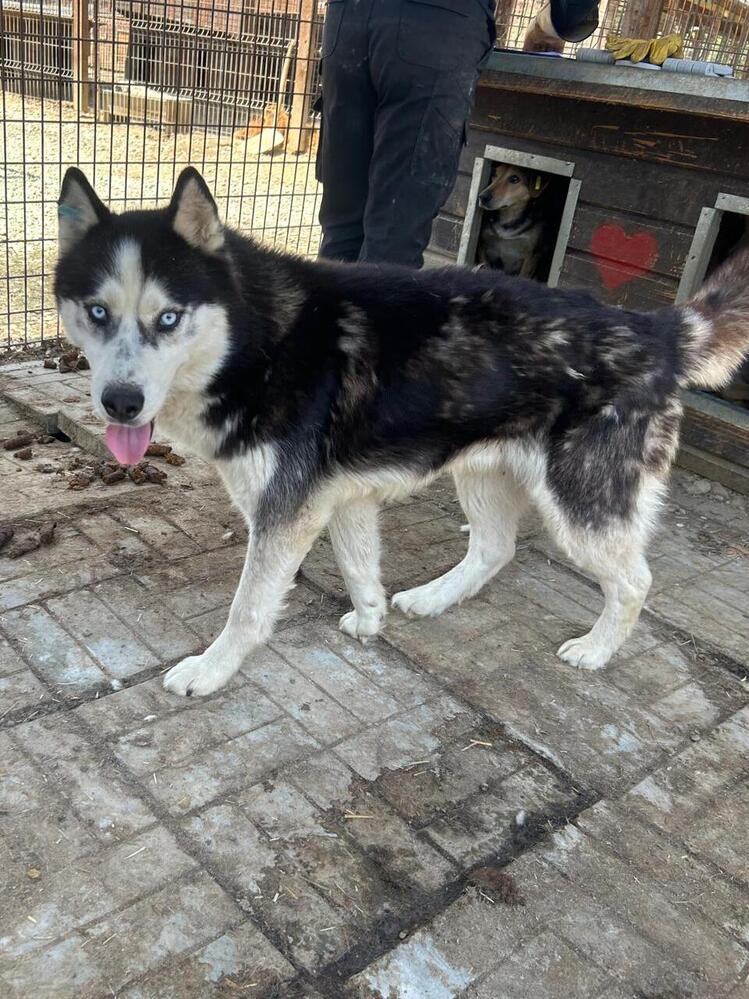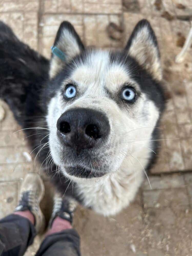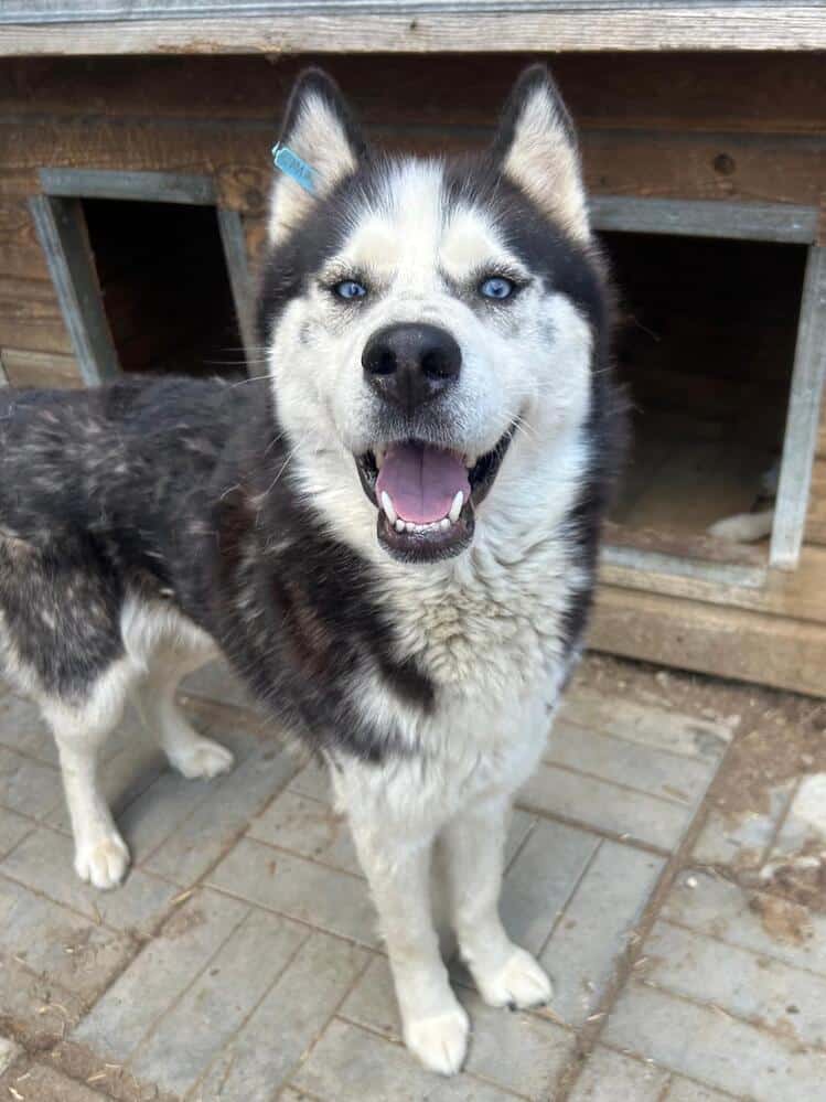 Dieser wunderschöne Husky-Rüde war bei unserem Besuch im März 2024 noch sehr neu im Shelter. ANNAK war am Tag unseres Besuchs erst kastriert worden. Aufgrund der Enge im VetKennel – in dem es kaum Ausweichmöglichkeiten gibt – bedrängten wir ihn nicht. Er nahm von sich aus Kontakt auf und wirkte freundlich. Da wir nicht viel testeten, fragten wir noch seine Tierärztin. Sie bestätigte uns, dass er sehr freundlich ist. Nicht nur zu Menschen, sondern auch zu anderen Hunden.