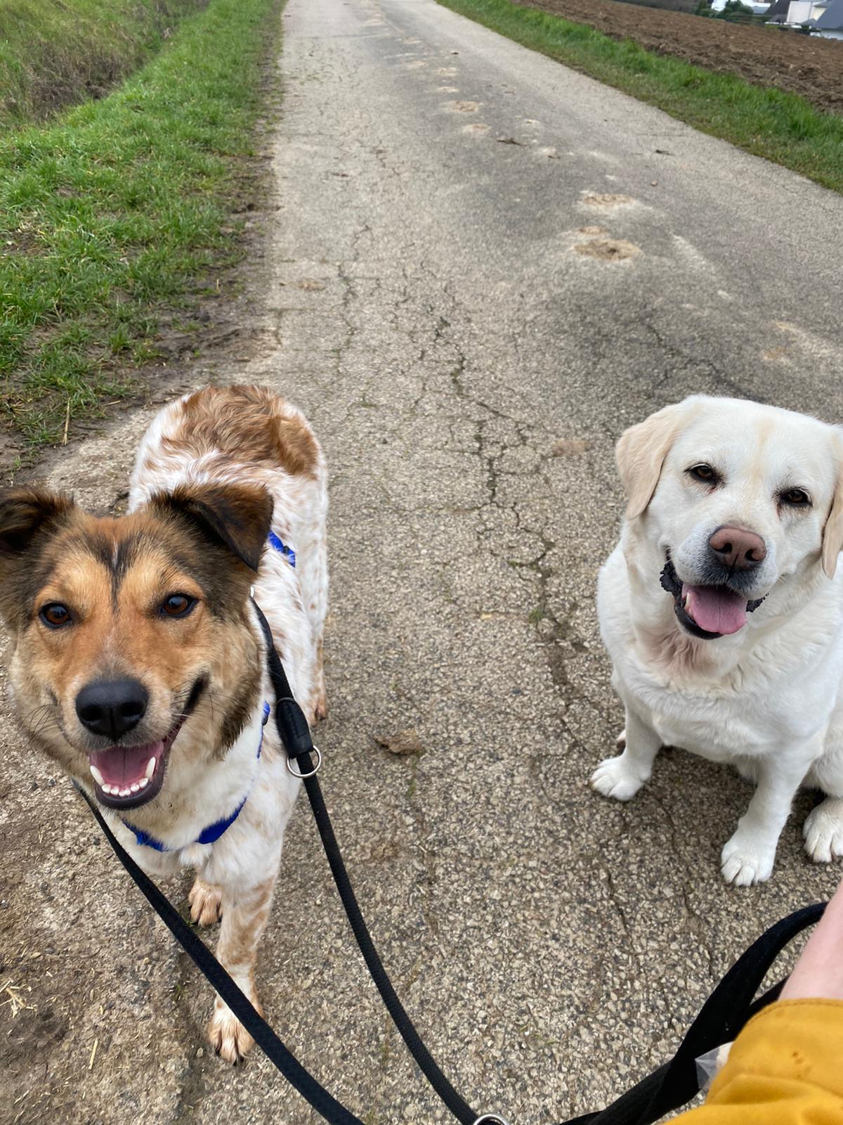 Vor allem taut sie sehr schnell auf. Von Männern scheint sie etwas mehr Angst zu haben, sie zieht sich dann sehr schnell in ihre Box zurück. Nach zwei Tagen bei mir geht sie mit mir aber bereits ganz toll an der Leine spazieren. Auch kann sie bereits erste Grundkommandos wie „Hier“ und „sitz“.
