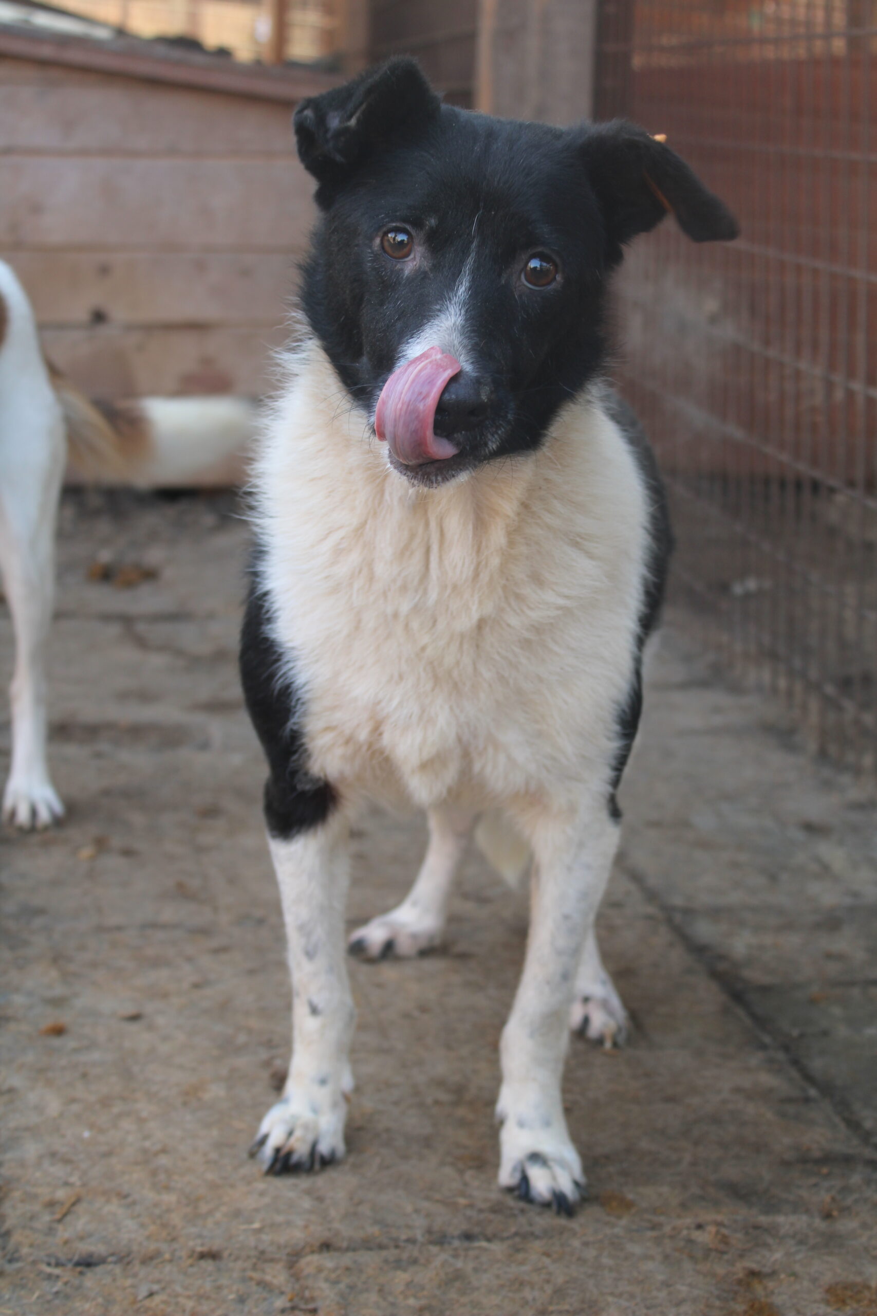 ANOUSCH kam neugierig auf uns zu und nahm Leckerlies aus der Hand. Sie ließ sich sogar anfassen und genoss ihre Streicheleinheiten. Die hübsche Hündin war sehr interessiert und nur noch etwas zurückhaltend. Mit den anderen Hunden im Kennel ist sie verträglich.