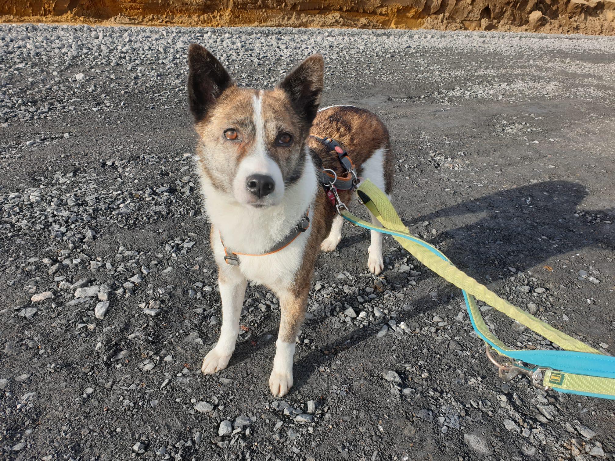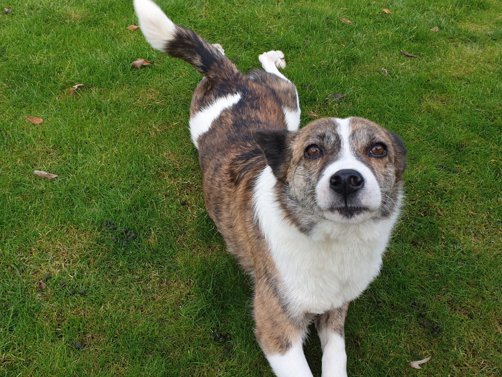 Mit den Hunden auf der Pflegestelle kommt sie gut aus, auch beim Gassigang sind Hundebegegnungen sehr relaxt. Und kann Einzel- oder Zweithund werden.