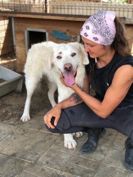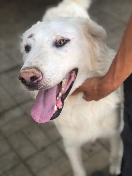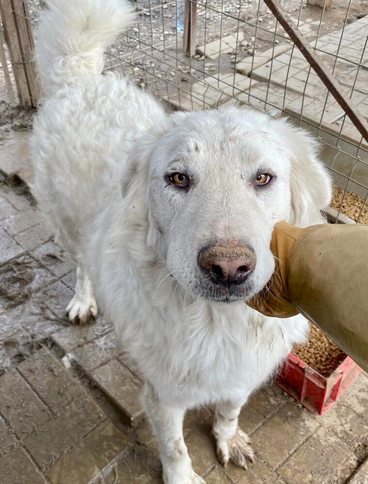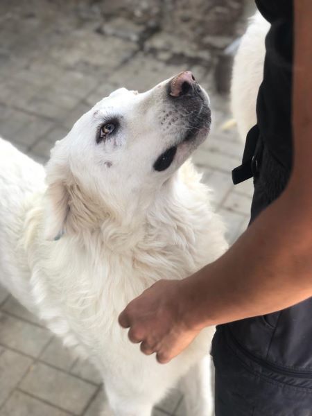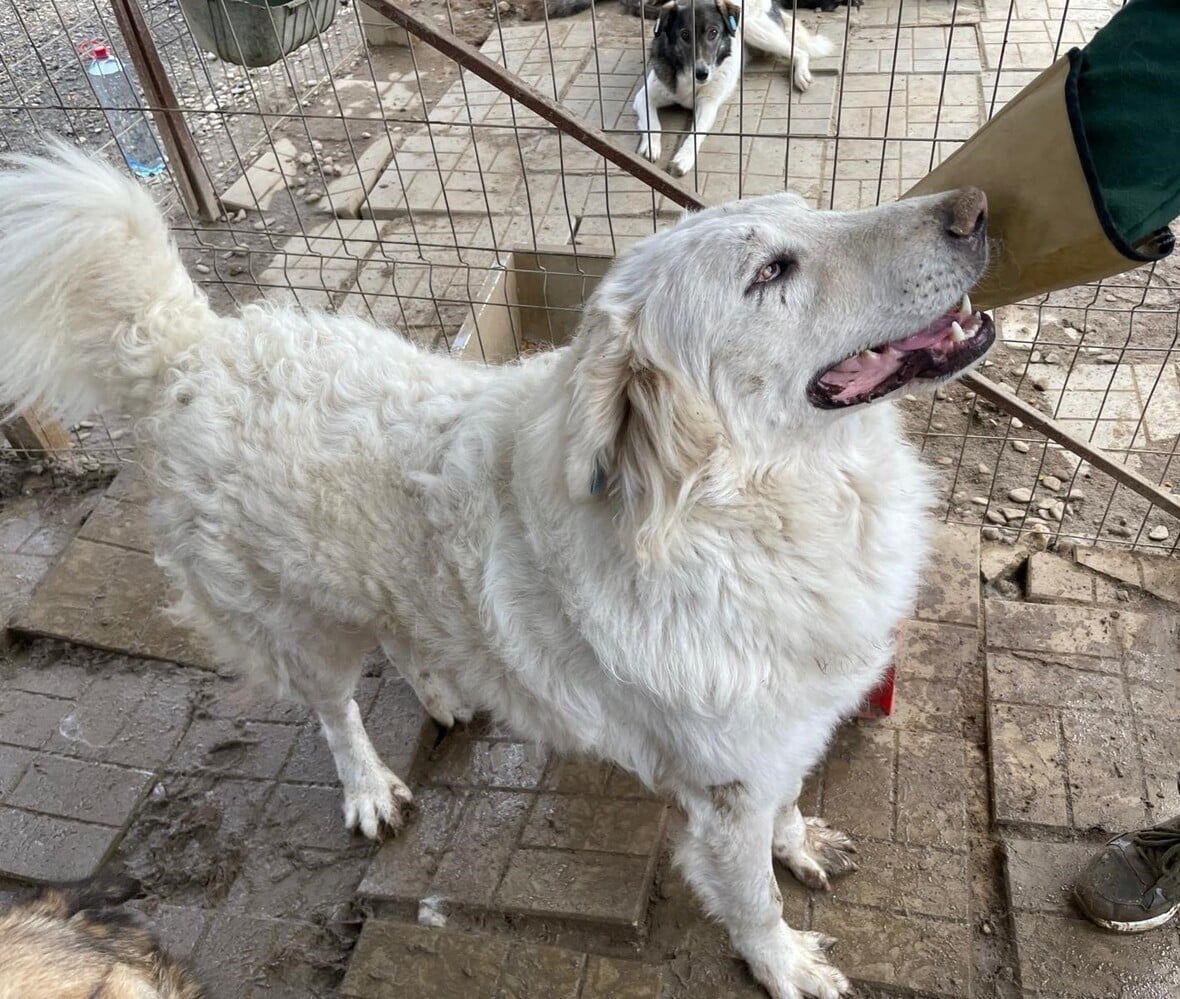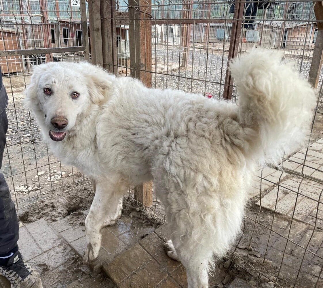 Eine eindrucksvolle Erscheinung ist dieser noch recht junge Kuvasz-Rüde. Wahrscheinlich wurde ANTEUS zusammen mit seiner Schwester JOYA abgegeben. Die beiden verstehen sich sehr gut. Uns gegenüber war er sehr freundlich, ließ sich begrenzen und korrigieren. Das sollte man unbedingt von der ersten Sekunde an können, ansonsten neigt er dazu, die Kontrolle zu übernehmen. Auch im Kennel zeigte er gegenüber anderen Hunden, die nicht wie zwei Hündinnen seine volle Zuneigung hatten, Kontrollverhalten. Eine Vermittlung erfolgt im Idealfall mit seiner Schwester und maximal noch zu anderen Hündinnen. Wir konnten ihn gut anfassen und streicheln.