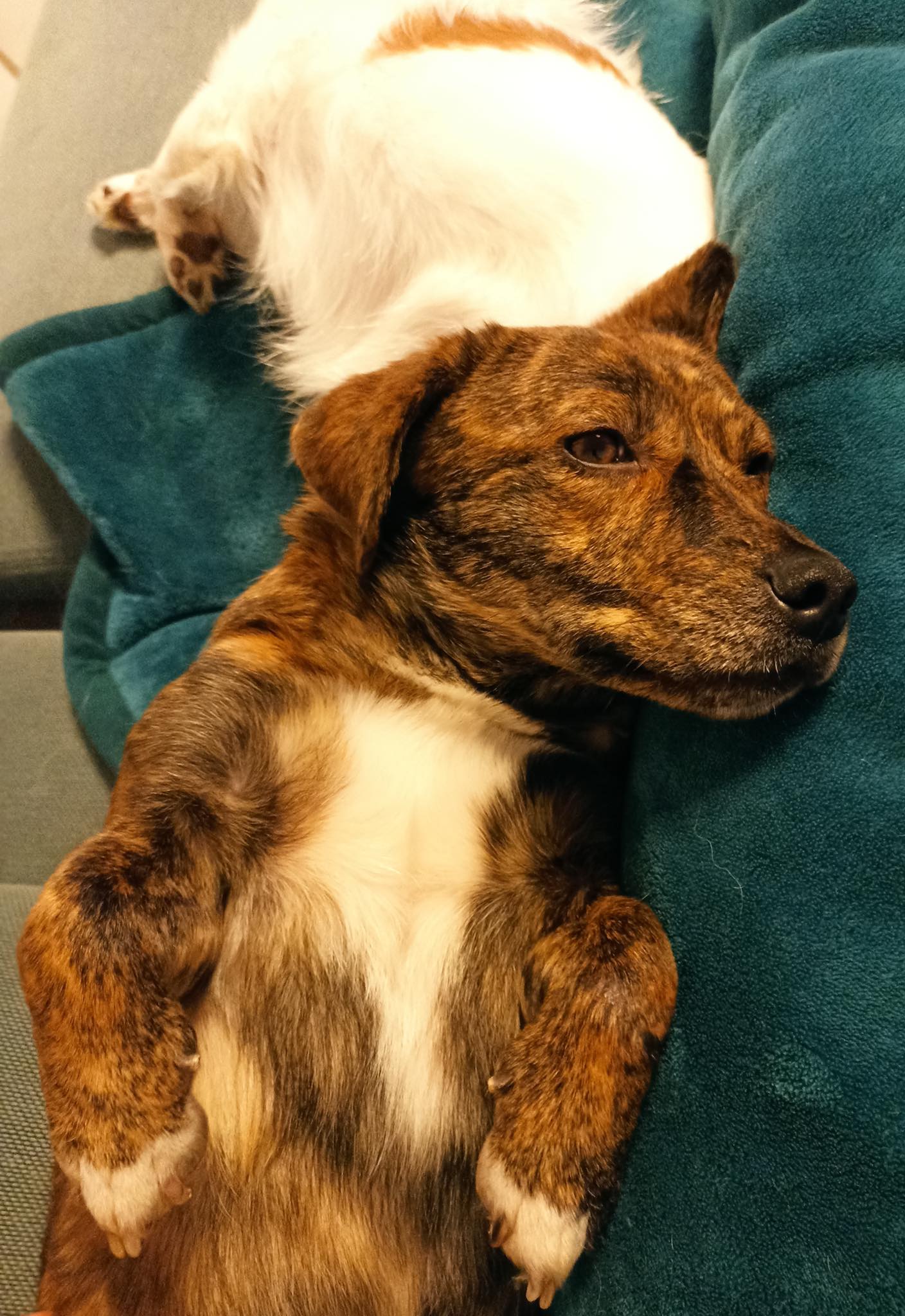Aony ist eine junge, aktive Hündin, die ihrem Alter entsprechend genug Beschäftigung und Auslauf benötigt. Auch sollte sie regelmäßig Kontakt zu anderen Hunden haben, sie ist sehr verträglich, kommuniziert vorbildlich mit anderen Hunden und spielt gerne. Hier bevorzugt sie aktuell kleine Hunde, große Hunde, die sich zu forsch nähern sind ihr noch nicht geheuer.