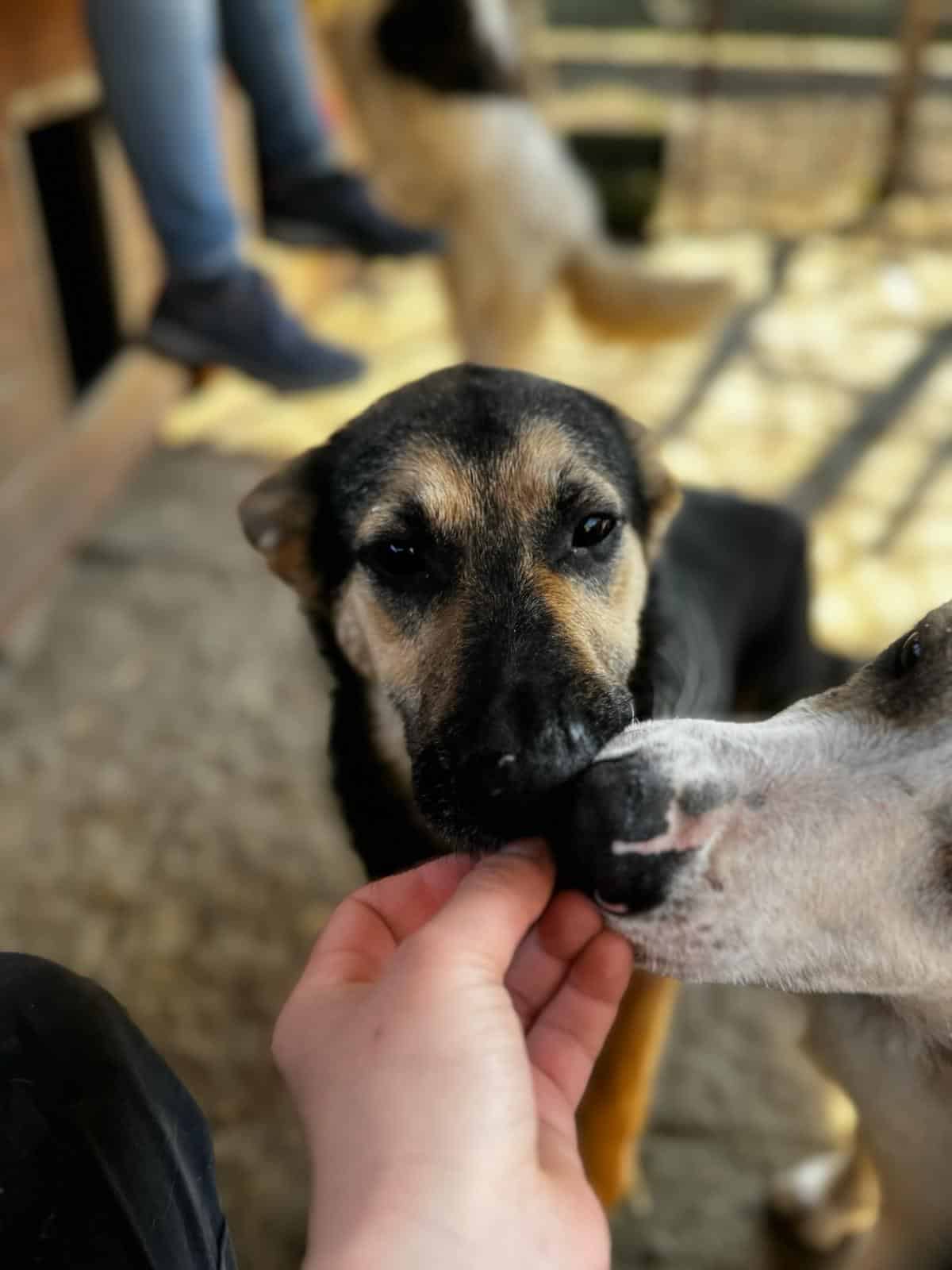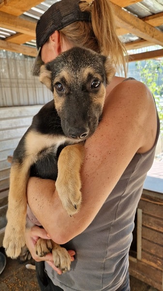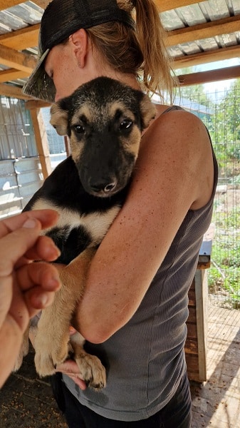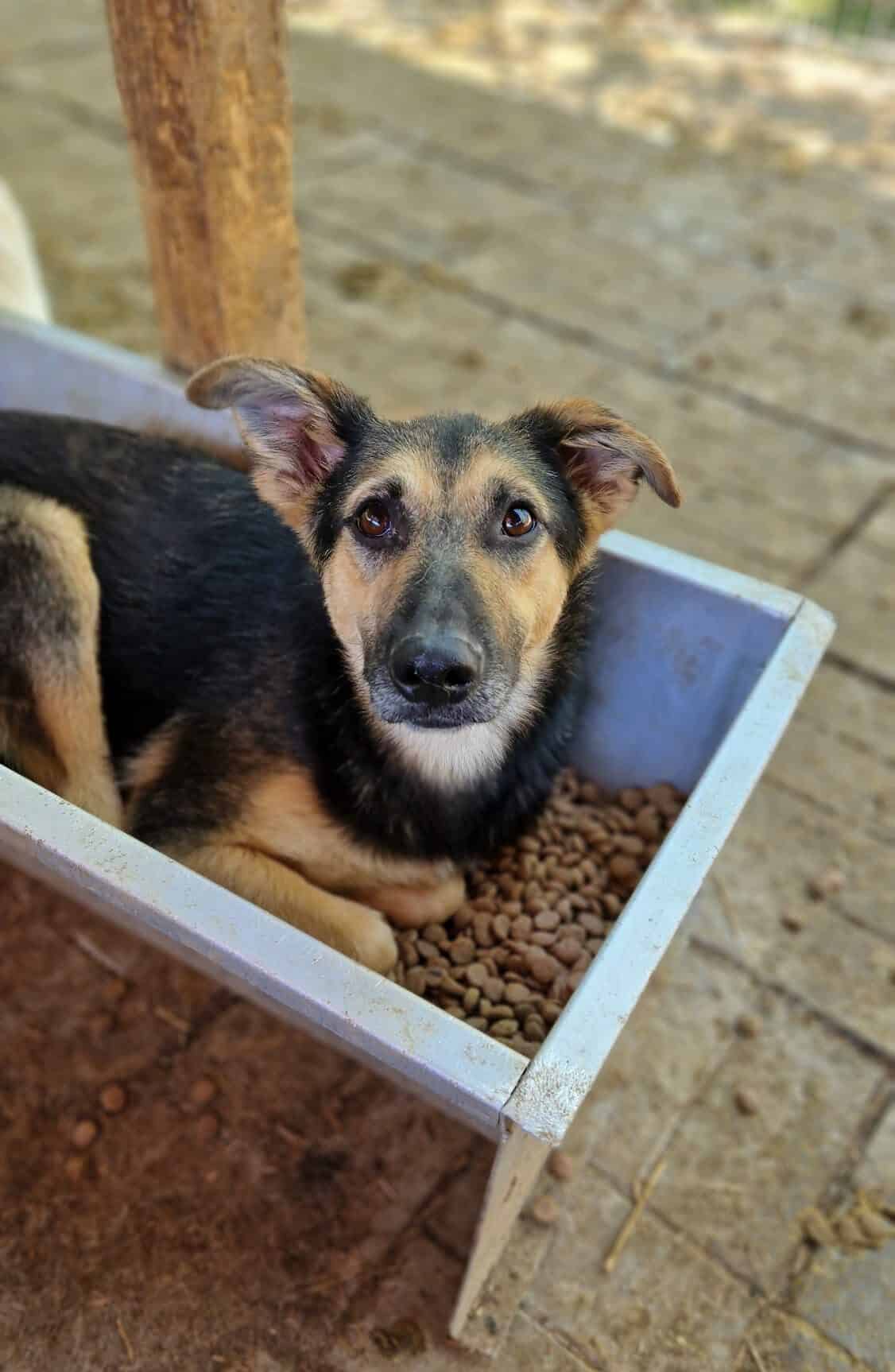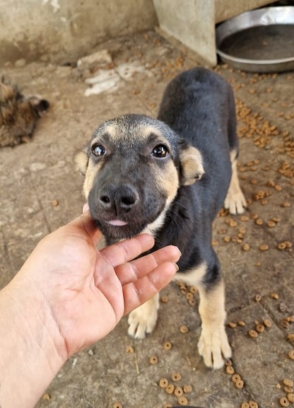 APAKA ist zu einer lieben und aufgeschlossenen Junghündin herangewachsen. Nach anfänglichem Zögern ließ sie sich gerne und überall streicheln. Forderte, nachdem man aufhörte, noch mehr Streicheleinheiten ein. Im Kennel zeigte sie sich sehr verträglich, mit Hündinnen und auch mit Rüden. An unseren mitgebrachten Leckerchen war sie sehr interessiert und nahm diese aus der Hand.