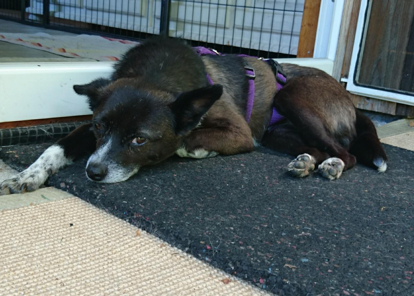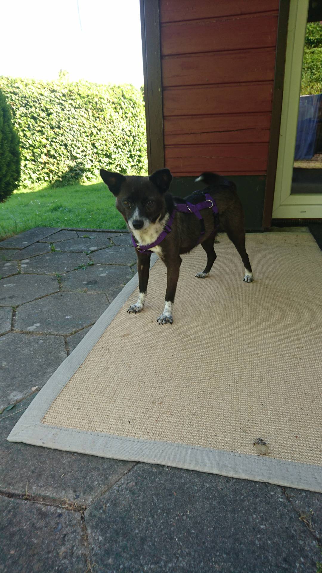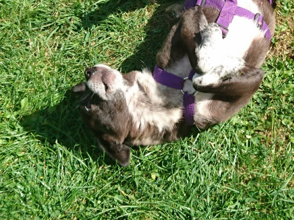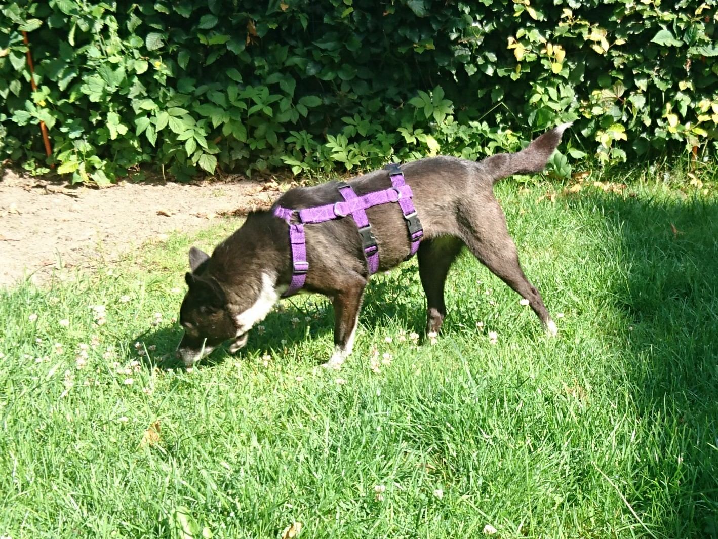 Aponi ist stubenrein, geht gerne in den Garten und liebt Spaziergänge.