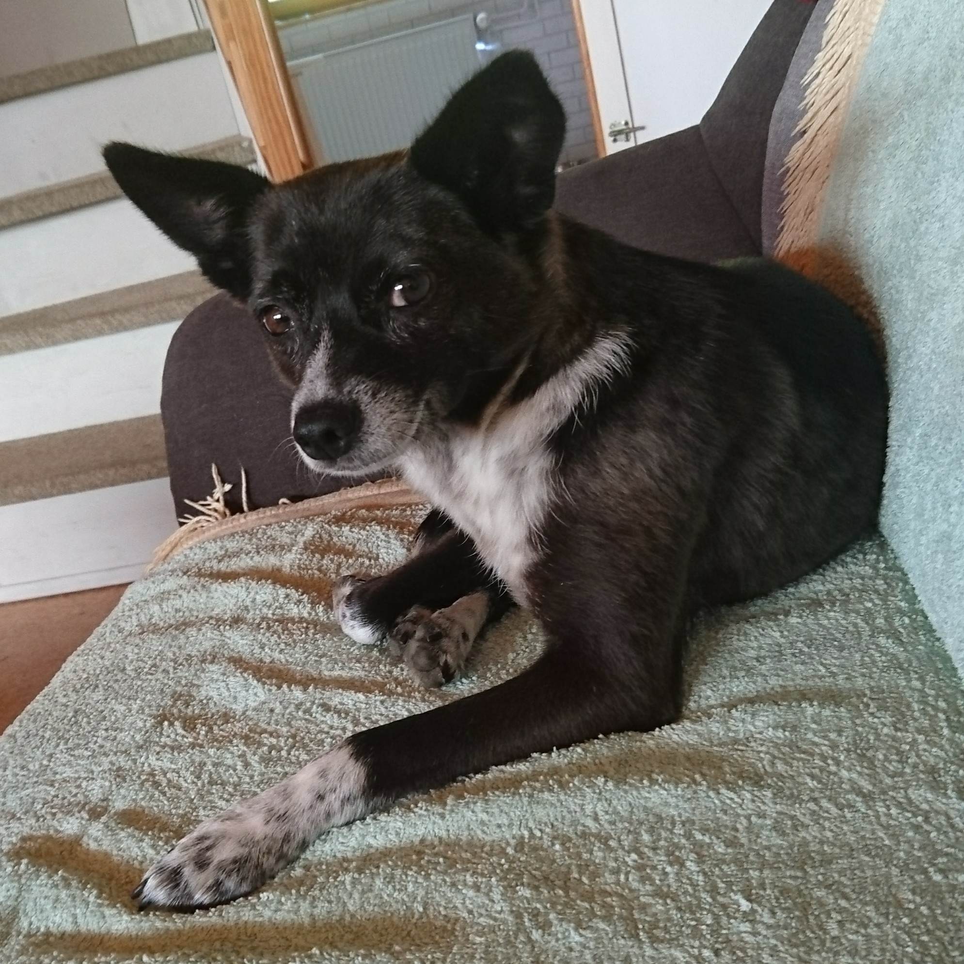Im Haus ist sie ruhig und entspannt, macht nichts kaputt und bleibt mit ihren Hundekumpels inzwischen bis zu zwei Stunden alleine.
