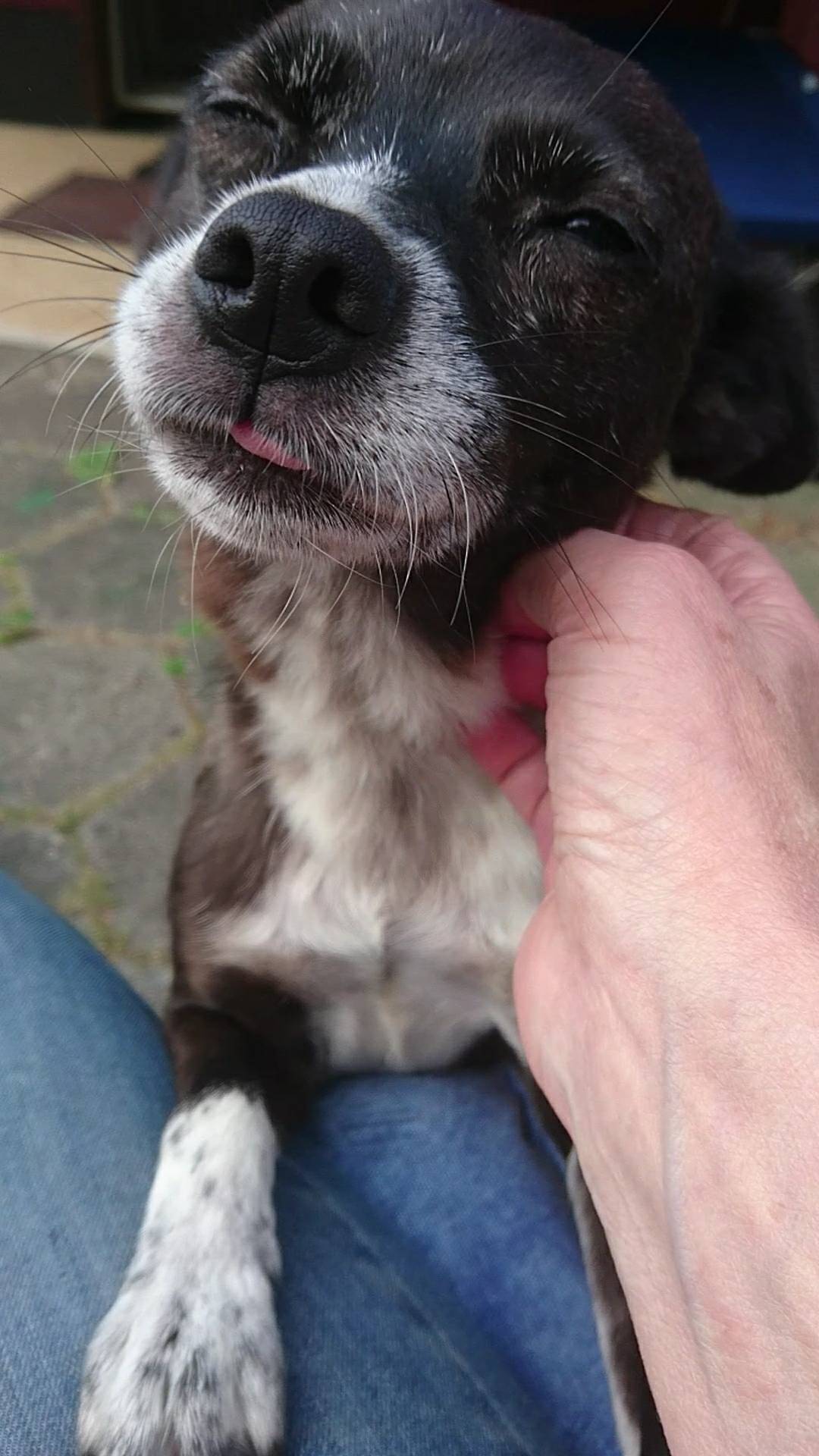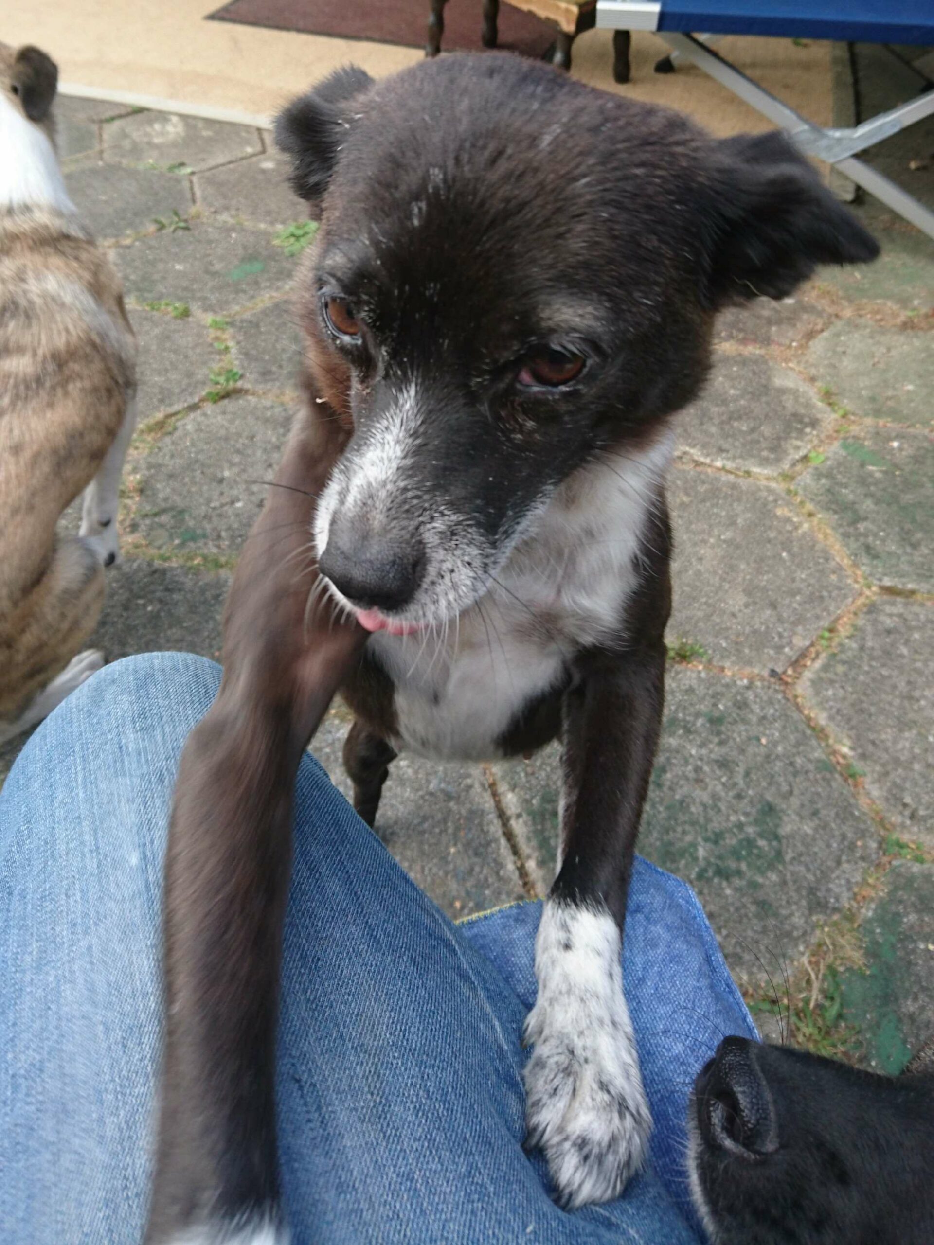 Aponi ist eine zarte, anhängliche, vorsichtige, freundliche Hündin die etwas Eingewöhnungszeit braucht.