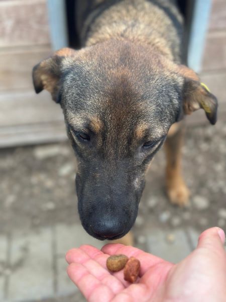 Sehr hübsche, junge Hündin, die sich sofort interessiert und ausgesprochen freundlich zeigte. APPA findet Leckerchen toll und wir konnten sie dabei auch anfassen. Wir testeten zu dem, ob wir sie unter Bedrängung komplett anfassen konnten. Gar kein Problem. APPA wird Streicheleinheiten nach kurzer Zeit lieben. Sie ist sehr verträglich, kann aber auch Einzelhund werden. Eine tolle Familienhündin, die in viele Haushalte passen würde.