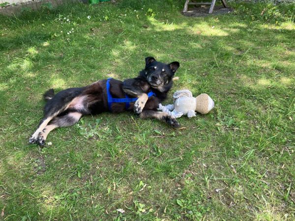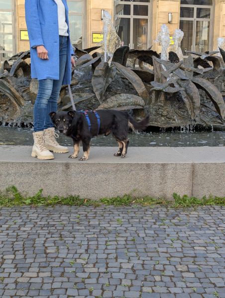 Draußen läuft Arashi super an der lockeren Leine und orientiert sich dabei prima am Menschen. Er ist kein Leinenpöbler und zeigt bisher auch keinen ausgeprägten Jagdtrieb.