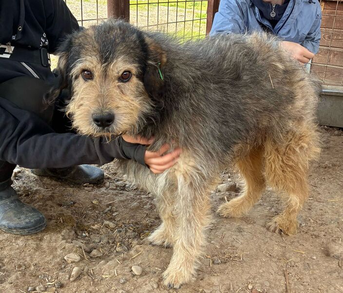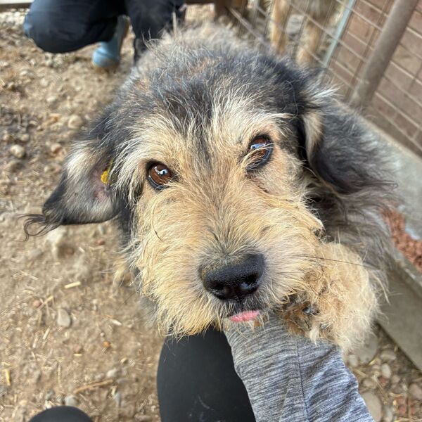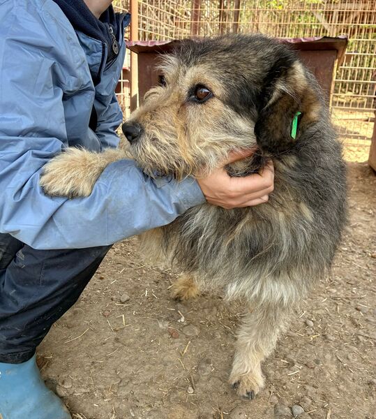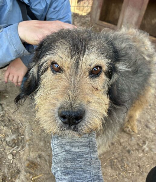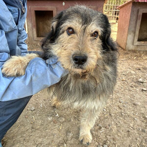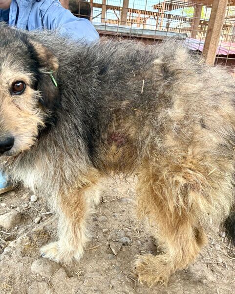 Der zuckersüße ARCHIMEDES begegnete uns mit einer stillen Dankbarkeit. Seine Freude über unseren Besuch zeigte er nicht durch wilde Sprünge oder Überschwänglichkeit – sondern durch seine ruhige und rührende Art, mit der er sich näherte und unsere Nähe suchte. Zärtlich holte er sich Streicheleinheiten ab, schmiegte sich an uns, pfötelte sanft nach mehr und strahlte uns mit seinen leuchtenden Äuglein an. Sorgen bereitet uns allerdings sein aktueller Zustand: Immer wieder kratzt sich ARCHIMEDES das stark verfilzte Fell und hat dadurch bereits einige wunde Stellen an seinem Rücken und den Flanken. Seine linke Hinterpfote weist zwei deformierte Zehen auf, was ihn jedoch augenscheinlich nicht beim Laufen behindert. ARCHIMEDES ist ein sanfter Hund mit großem Herzen, der so gern gesehen werden möchte. Er sucht dringend einen liebevollen Platz, wo er heilen, ankommen und losleben darf – Damit er endlich ein sorgloses Leben auf der Sonnenseite führen kann.