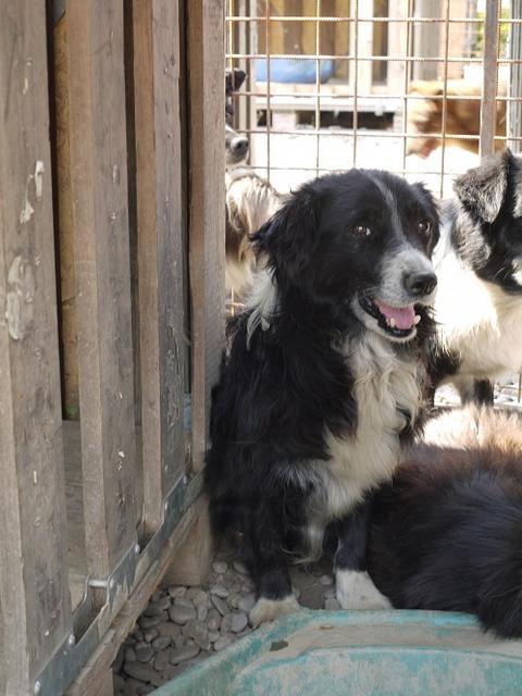 ARETHA ist unsicher, sie orientierte sich sehr an den anderen unsicheren Hunden in ihrem Kennel.