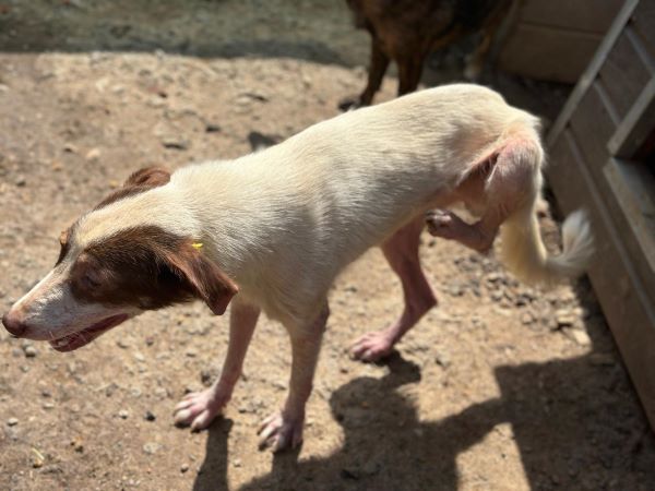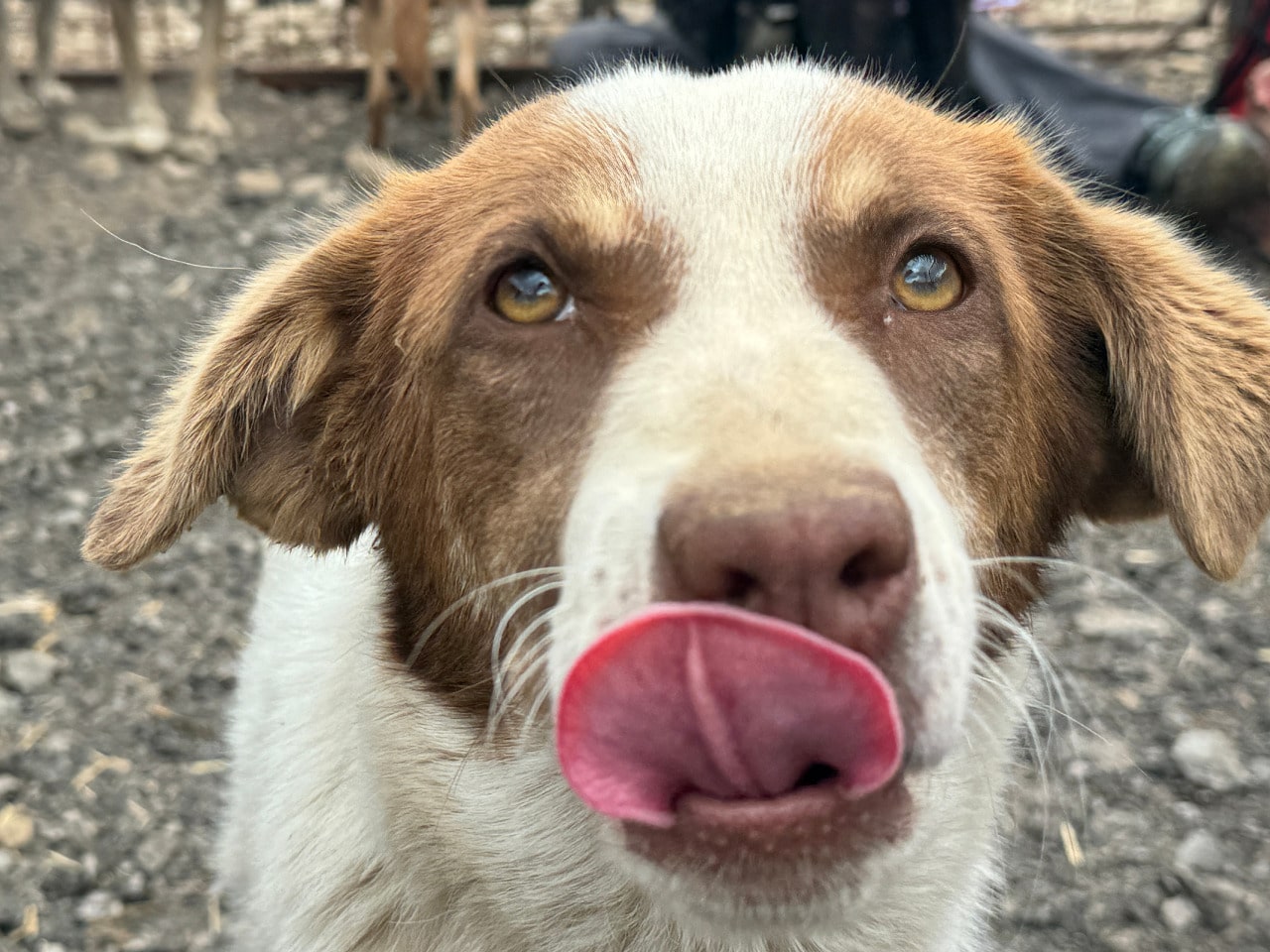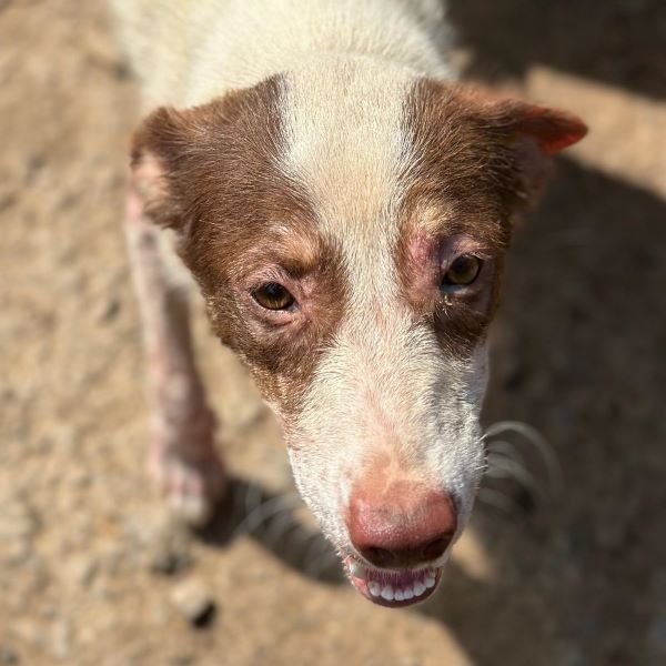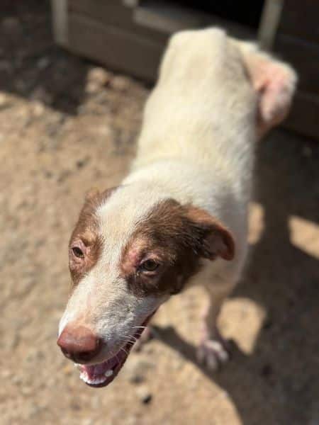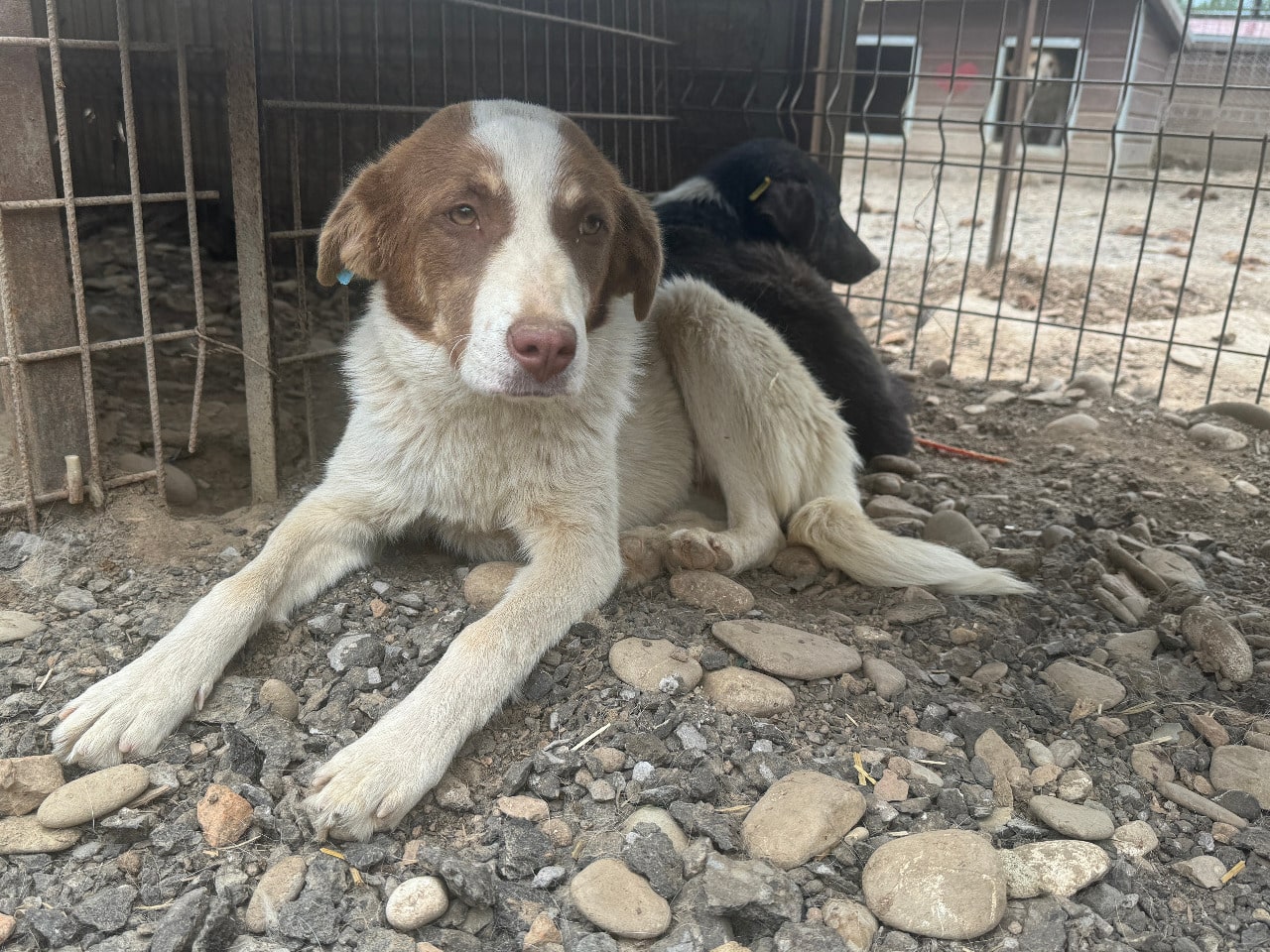 Wunderschöne weiß-braune Hündin, sehr freundlich und neugierig. Unsere Leckerchen hat sie gerne angenommen und am liebsten alle für sich beansprucht. Sie zeigt sich leicht eifersüchtig, aber mit guter, klarer Kommunikation. Als die anderen Hunde im Kennel an der Reihe waren, hat sie sich ganz ruhig in die Ecke gelegt.
