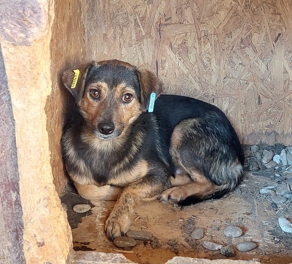 Der kleine ARGOS lebt zu seiner eigenen Sicherheit mit Welpen zusammen, die kaum kleiner sind als er selbst. Er zeigt sich in der Gruppe absolut umgänglich. Bei uns Menschen ist er jedoch etwas unsicher. In seinem Zuhause sollte man ihm in Ruhe die Welt zeigen, dann wird er ganz sicher schnell seine Unsicherheit verlieren.