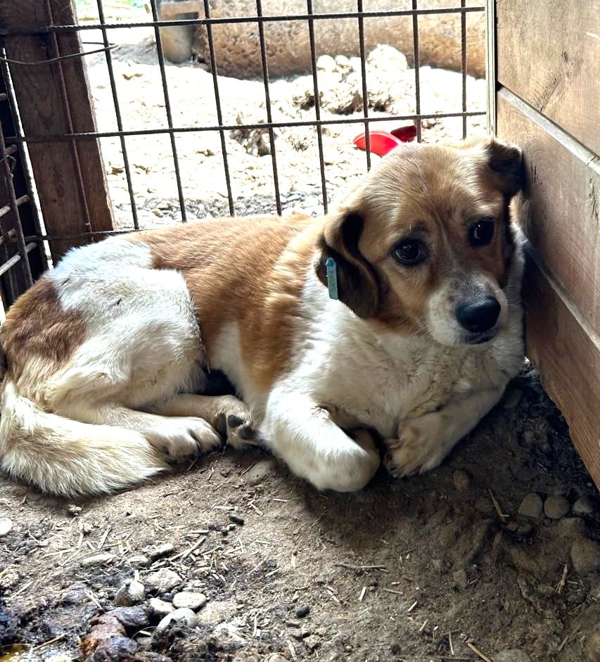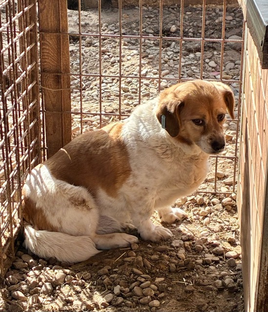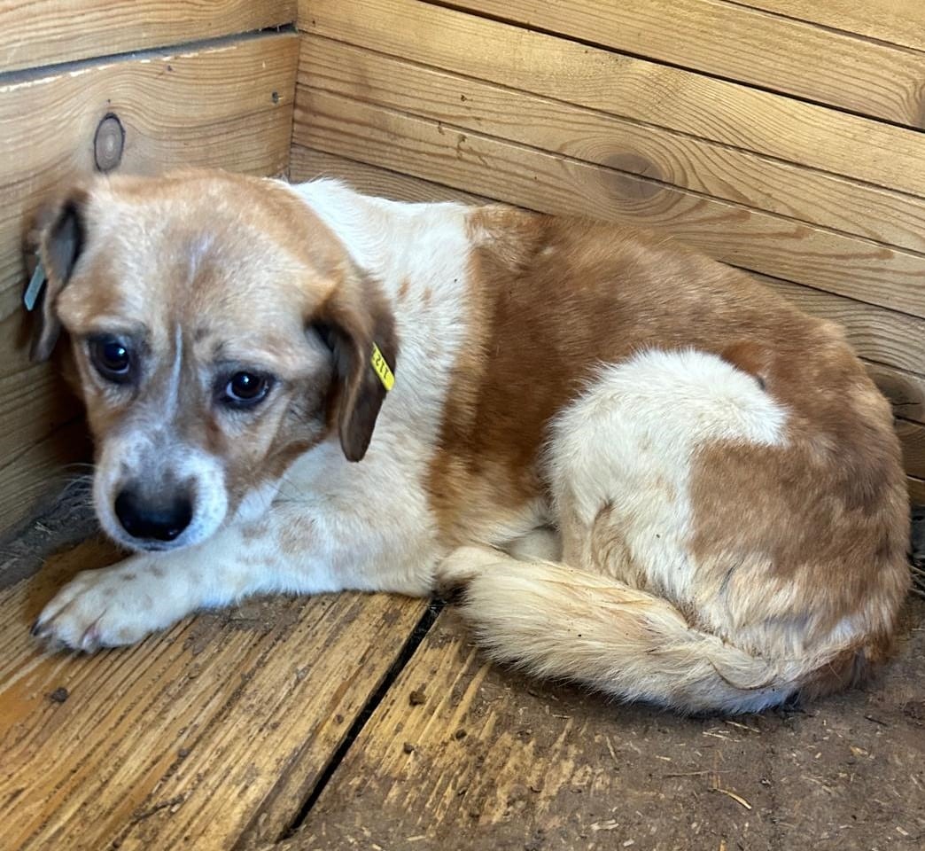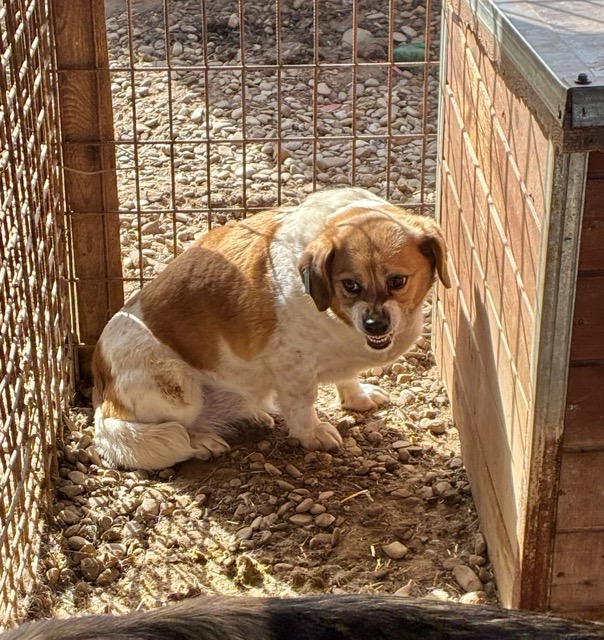 Die kleine Hündin ARIELLE bot uns einen traurigen Anblick wie sie da so in eine Ecke gedrückt im Kennel lag. ARIELLE wirkte auf uns resigniert und scheint vom Leben nichts Gutes mehr zu erwarten. Mit der falschen Hand, haben wir sie streicheln können, nachdem sie zunächst durch Abschnappen versuchte, sich dem zu entziehen. Dabei blieb sie die ganze Zeit sehr angespannt. Ihre Ecke wollte sie auf keinen Fall verlassen. Erst als wir sie nötigten, stand sie auf und verzog sich in die Hütte. Hier sind Menschen gefragt, die sich mit ängstlichen Hunden auskennen und sich durch anfängliches Schnappen nicht gleich beeindrucken lassen.