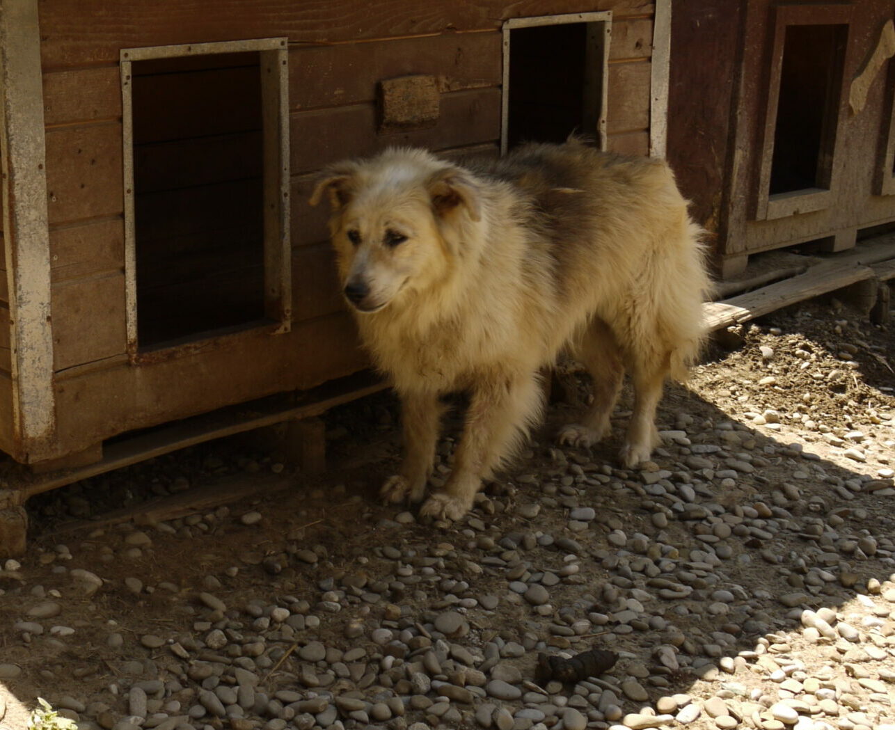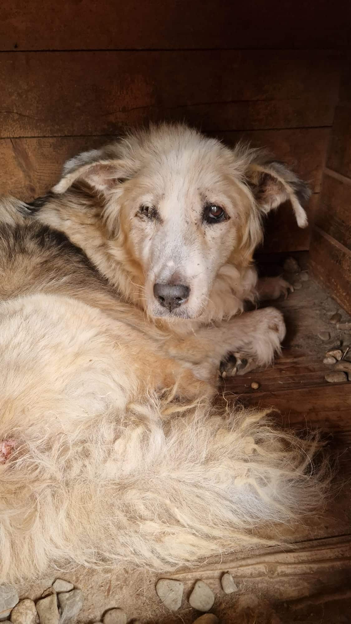 ARIH haben wir völlig fertig in einer Hütte gefunden. Er scheint nur noch auf sein Ende zu warten. Sein rechtes Auge ist zugeschwollen, er war nicht mehr dazu zu bewegen, aufzustehen, und hat körperlich total abgebaut. Futter nimmt er aber noch gerne.