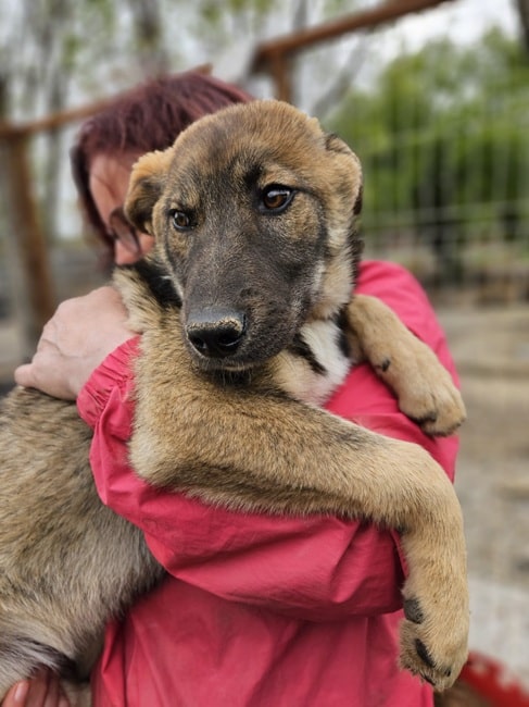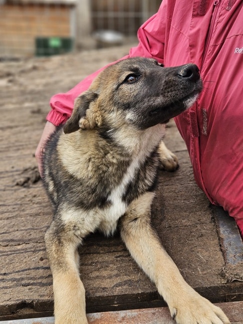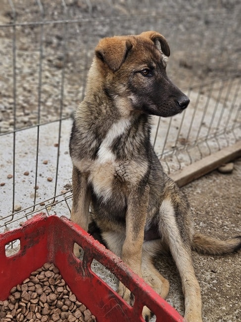 Der Bub ist einer der ruhigeren in seinem Kennel. Aber trotzdem welpentypisch verspielt und freute sich über die Abwechslung, die unser Besuch in seinen tristen Alltag gebracht hat. Aufgrund seiner Pfoten gehen wir davon aus, dass er eher etwas größer wird.