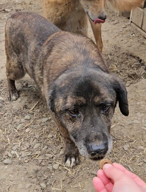 ARTHUS wartete geduldig in der zweiten Reihe, während wir uns mit den aktiveren Hunden des Kennel beschäftigen. Als wir uns ihm zuwandten, nahm er gerne unsere Leckerchen aus der Hand. Für mehr fehlte ihm der Mut und er wich zurück. In einer anderen Umgebung mit verständnisvollen Menschen, die ihm Zeit zur Eingewöhnung geben, sollte er noch zutraulicher werden.