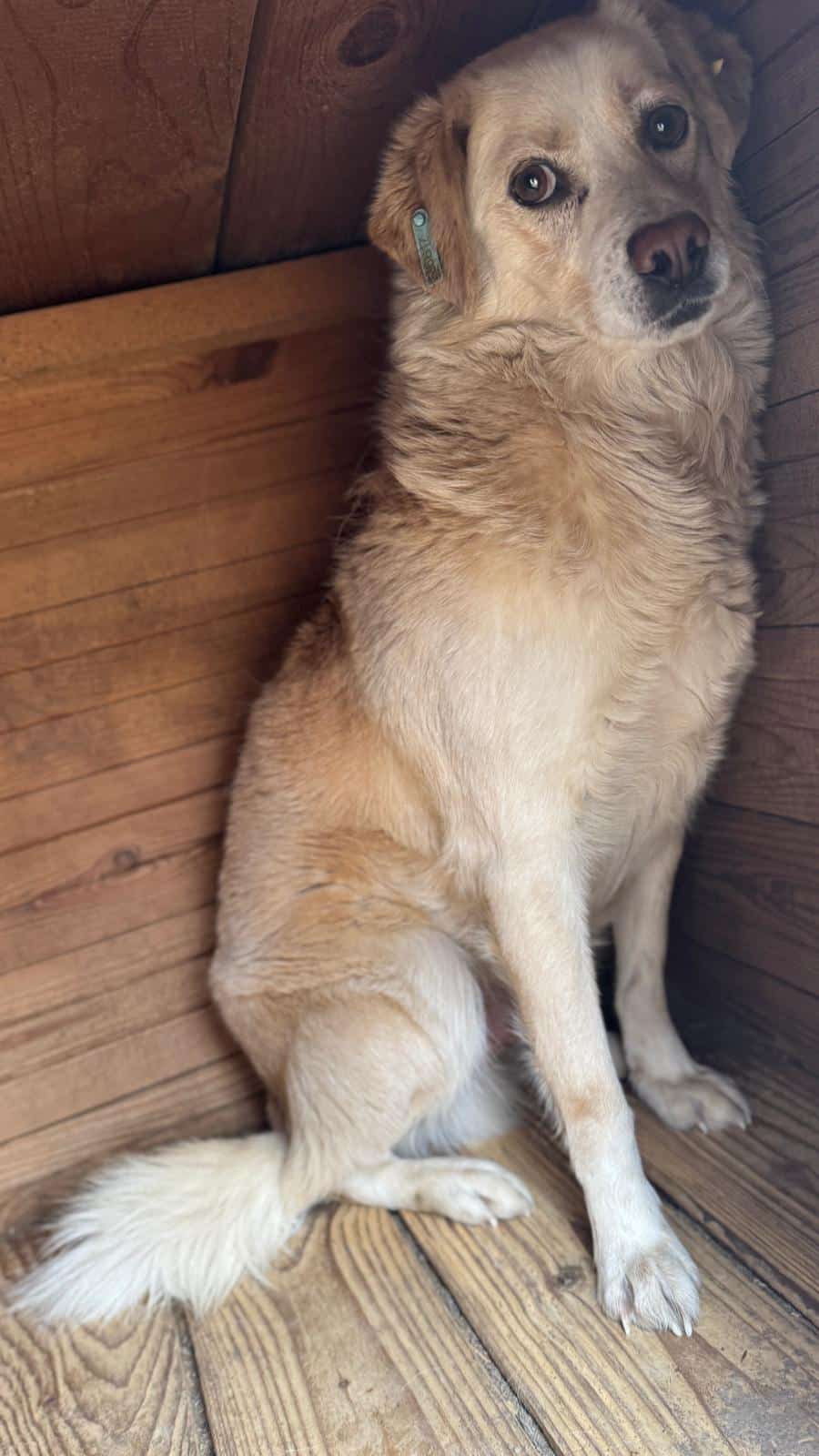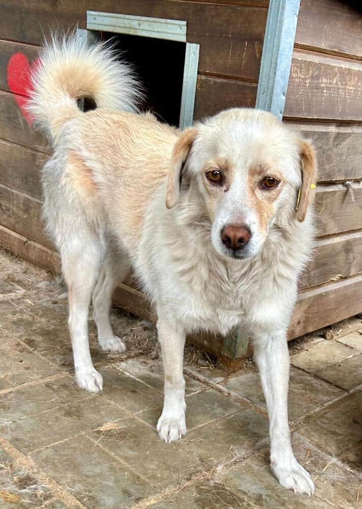 ARTJOM begrüßte uns neugierig und war sehr an uns interessiert. Endlich einmal Abwechslung! Aber so ganz in unsere direkte Nähe traute er sich leider nicht. Leckerli fraß er gern vom Boden und auf dem Hüttendach, direkt aus unserer Hand nahm er sie nicht. Als wir ihn bedrängten, konnten wir ihn gut streicheln und auf den Arm nehmen. ARTJOM zeigte hierbei weder Abwehr – noch Fluchtverhalten. Ein ganz toller Kerl, der den menschlichen Kontakt einfach nicht gewohnt ist. In einer anderen Umgebung würde ARTJOM vermutlich in wenigen Tagen zutraulicher werden.