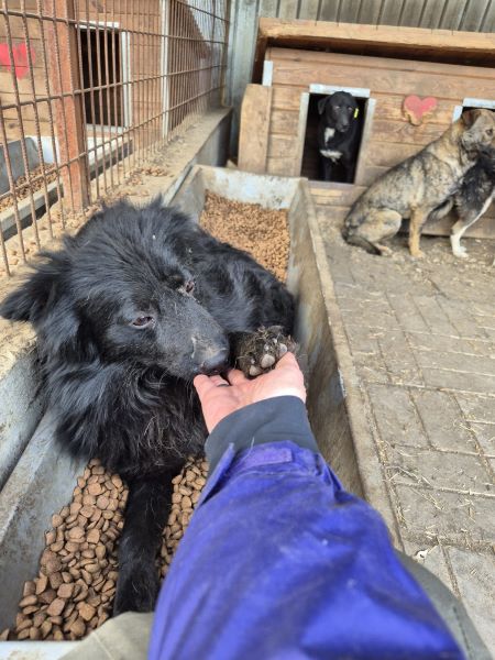 Dieser junge zurückhaltende Rüde lag überwiegend in seiner Hütte als wir den Kennel betraten. Dort ließ er sich anfassen und streicheln, konnte dies aber nicht genießen. Leckerchen nahm er aus der Hand. Als wir ihn außerhalb der Hütte leicht bedrängten, reagierte er mit einem halbherzigen Abschnappen, was auf seine Unsicherheit zurückzuführen ist. Wer sich davon nicht beeindrucken lässt, wird diesen kleinen Kerl schnell für sich gewinnen können. Er teilt sich den Kennel mit vier weiteren Rüden und scheint dort verträglich.
