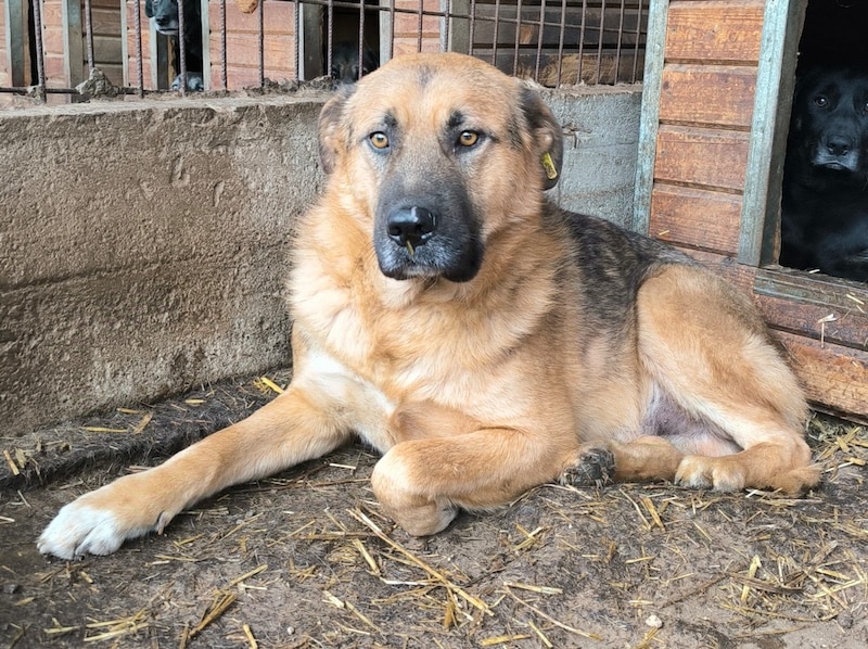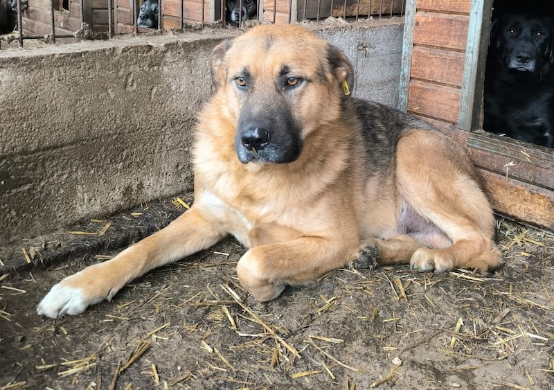 ARUN ist ein lieber, ruhiger Rüde. Er lag zunächst nur in der Hütte, kam dann zu uns und wir konnten ihn problemlos anfassen und streicheln. Er macht einen teilnahmslosen und resignierten Eindruck auf uns. Leider ist Arun aktuell zu dick.