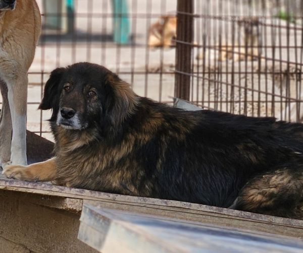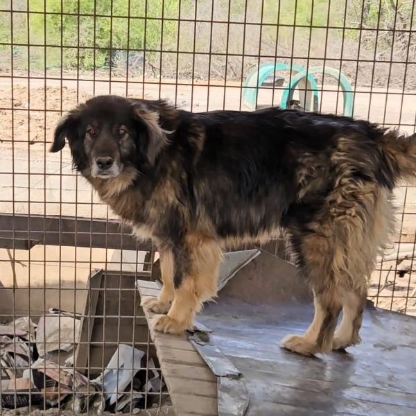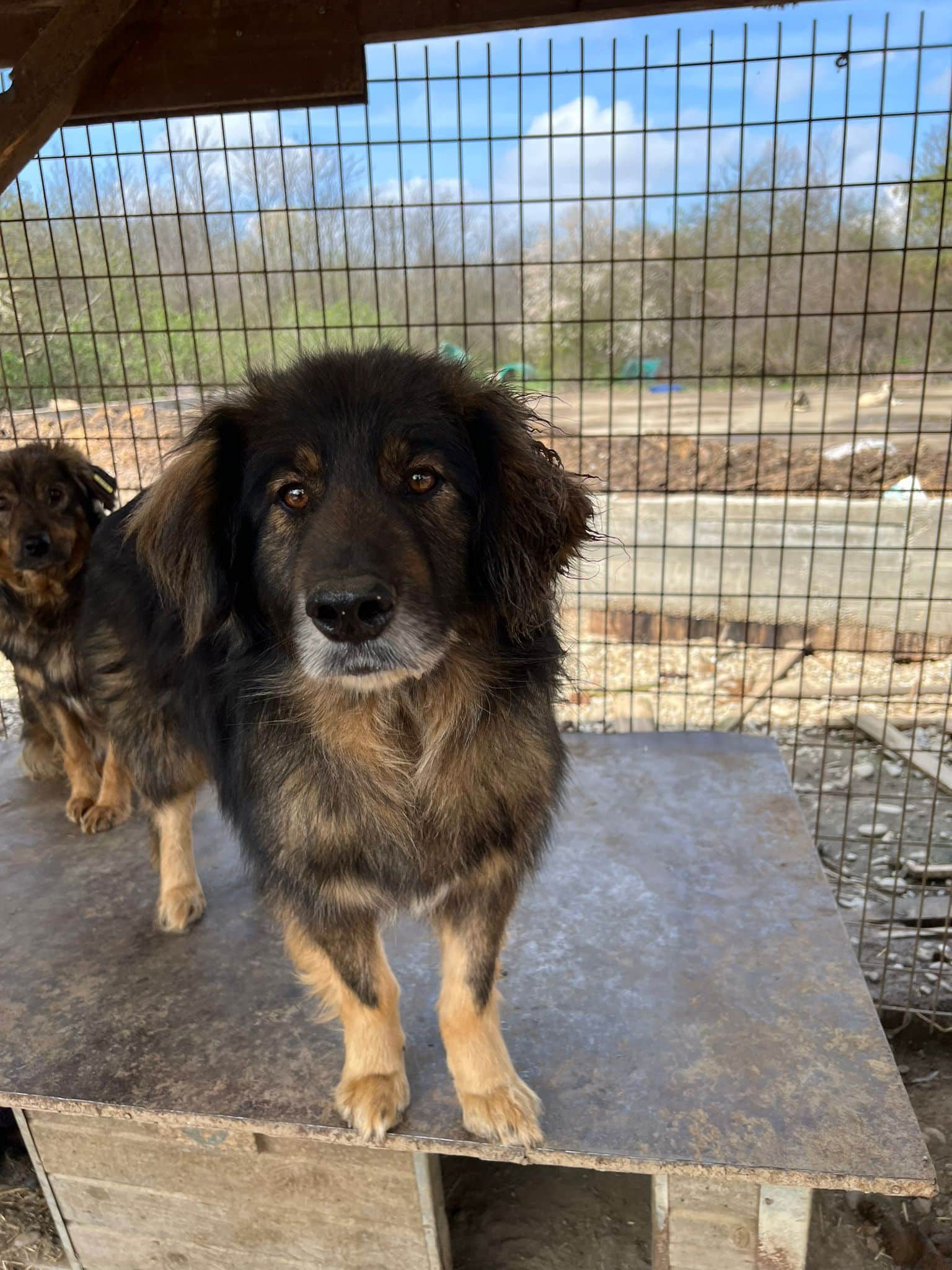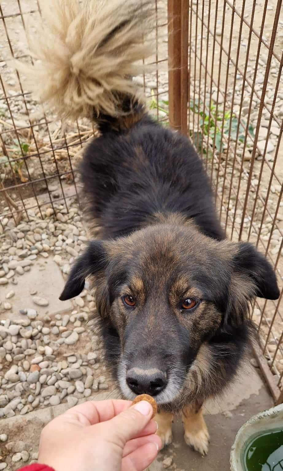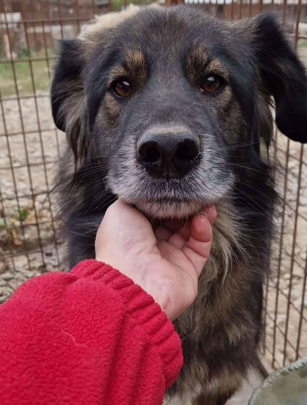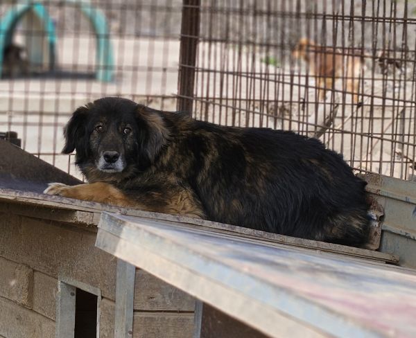 Als wir den Kennel betraten, lag Arwen auf dem Hüttendach und beobachtete uns. Als er merkte, dass wir Leckerli dabei hatten, stand er auf, um sich welche abzuholen. Dabei ließ er sich dann auch sehr gut anfassen. Er konnte die Streicheleinheiten nach kurzer Zeit sogar richtig genießen und die Leckerli schienen gar nicht mehr so wichtig zu sein. Arwen ist ein ganz toller Hund, der nach so langer Zeit im Shelter endlich seine Familie finden sollte.