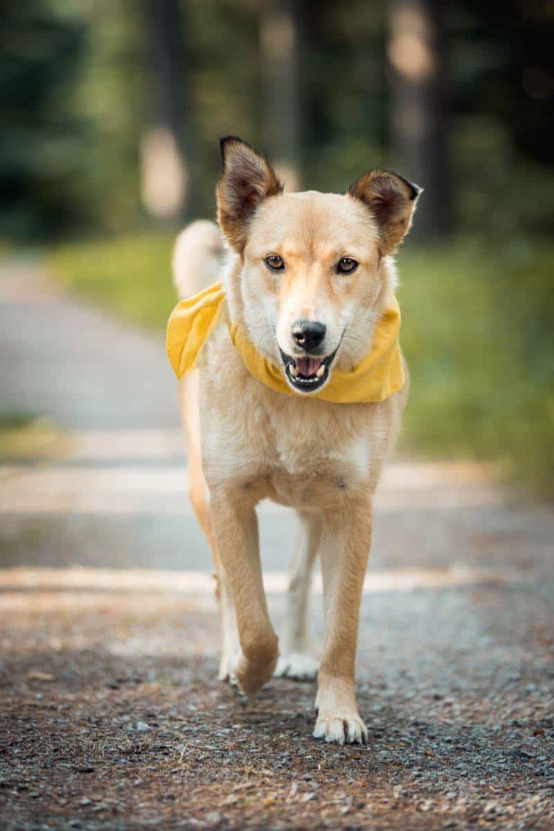 ARYA ist draußen gemütlich unterwegs und läuft die meiste Zeit neben oder hinter mir an lockerer Leine. Sie erkundet gerne Mäuselöcher oder lässt sich auf ein Futtersuchspiel ein. Wenn sie Umweltreize wie Autos, Fahrräder oder Passanten erblickt läuft sie ein paar Schritte zur Seite, wartet ab bis es vorbei gezogen ist und läuft dann entspannt weiter. Wenn wir an einem Bach oder See vorbeilaufen, nimmt sie auch gerne ein Bad. Die Gassirunden mit ihr verlaufen generell sehr entspannt.