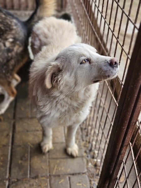ASMAI zeigte sich bei unserem Besuch diesmal verspielt und menschenbezogen. Sie hat sich sehr über uns gefreut und wir konnten sie gut anfassen und streicheln. Sie scheint in ihrem winzigen Kennel, den sie immer noch mit mehreren anderen großen Hunden bewohnt, keine besonders hohe Stellung zu haben und hat zunächst im Schutz unserer Anwesenheit gefressen und getrunken. Leider hat sie auch eine Bisswunde. ASMAI ist eine nette Hündin, die ihre letzte kleine Unsicherheit in einem eigenen Zuhause wahrscheinlich bald ablegen könnte.