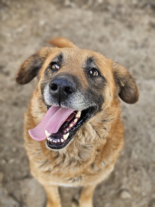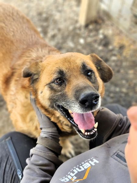 Dieser braune Junghund freute sich extrem über unseren Besuch und zeigte sich dabei sehr zutraulich und neugierig! Er ließ sich gerne anfassen und hatte dabei keinerlei Berührungsängste. Insgesamt ein richtiger gute-Laune-Hund, der es liebt, in Gesellschaft von Menschen zu sein und zu schmusen. Ein wirklich toller Begleiter, mit dem man sicherlich viel Spaß haben kann – sein großes Lächeln spricht dabei Bände!
