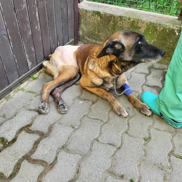beide Hinterbeine waren gebrochen, 1. Op am 09.4.24, eine zweite Op folgt.