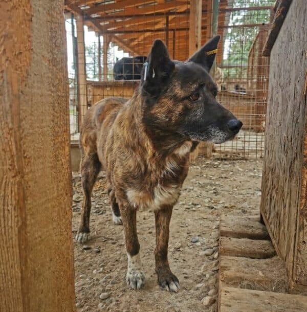 Dieser gutaussehende Rüde hielt sich anfangs nur im Hintergrund auf, vermutlich hat er bisher wenig Erfahrungen mit Menschen gemacht. Schnell merkte er jedoch, dass wir ihm nichts böses wollten und außerdem noch feine Leckereien verteilten. Das Eis war gebrochen und er kam immer näher an uns ran, nahm die Leckerchen dankbar an und war sogar vorsichtig anfassbar. Noch ein wenig Zeit und Beschäftigung mit ihm und er würde weiter auftauen.