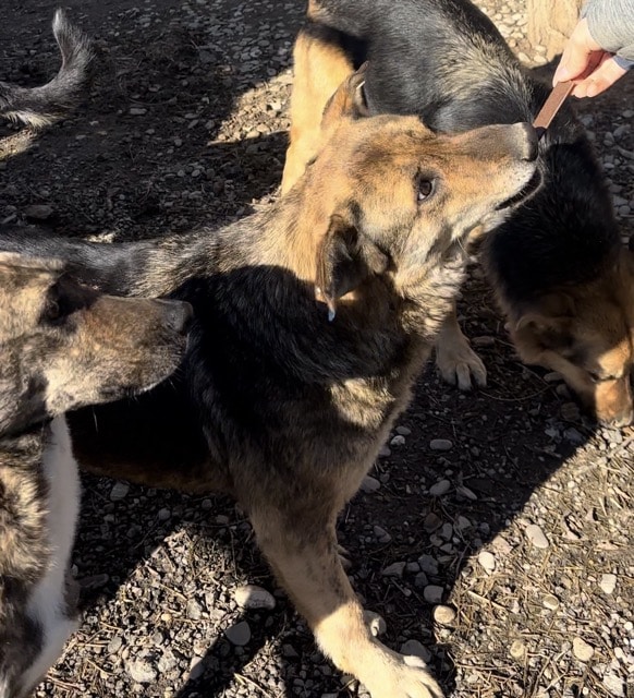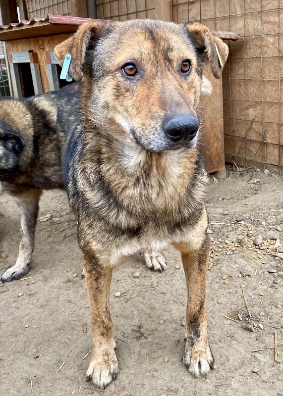 Wir waren sehr erfreut, AUREL wieder auf allen 4 Beinen anzutreffen. Im April 2024 hatten wir ihn im Vetkennel gefunden, dort konnte er seine Hinterbeine nicht mehr bewegen. Zu dem Zeitpunkt lebte er ein Jahr schon freilaufend in Bucov. So fröhlich gestimmt, wie er freilaufend war, so positiv gestimmt haben wir ihn nun in seinem neuen Kennel in Bucov erlebt. AUREL hatte eine Femurkopfresektion und kann wieder laufen, das hätten wir so nicht erwartet und freuen uns sehr für ihn, denn als er sich nicht mehr bewegen konnte, war er ein gebrochener, sehr trauriger Kerl. Er ist aber noch ein wenig wackelig in der Hinterhand und bräuchte eigentlich weiche Betten und Physiotherapie. Nach all dem Schlimmen hat er es wirklich so sehr verdient, nach Jahren im Shelter noch einmal umsorgt und geliebt sein Leben verbringen zu dürfen.
