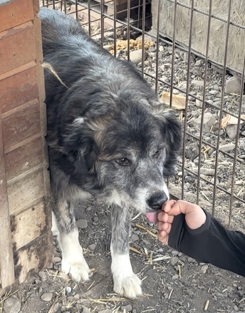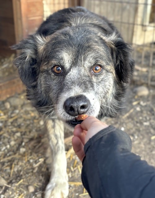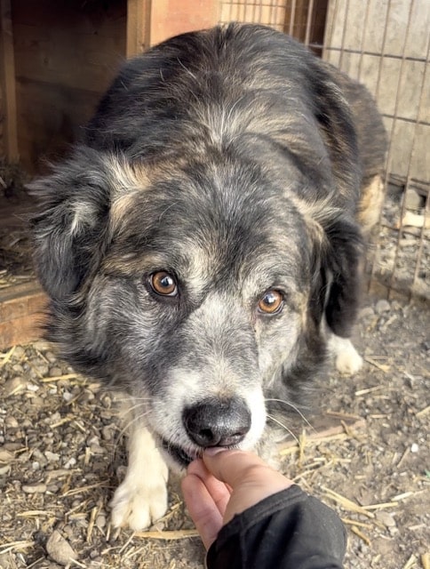 Avalon sitzt schon seit 2018 in Campina, mehr als die Hälfte seines Lebens in einem winzigen Zwinger ohne Kontakt zu Menschen und Aussenwelt. Bei unserem Besuch war er interessiert und neugierig und nahm die Leckerli aus der Hand. Zum Anfassen fehlt ihm leider, aufgrund der fehlenden Erfahrung mit Menschen, noch der Mut.