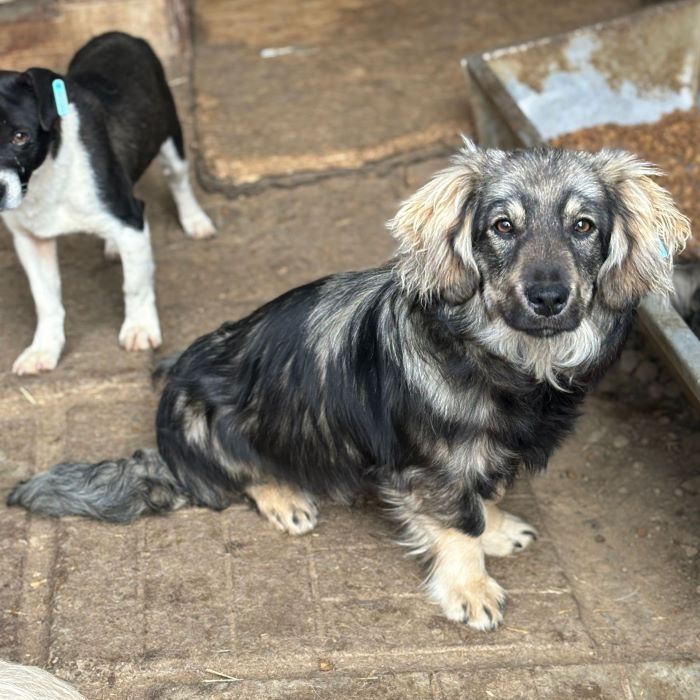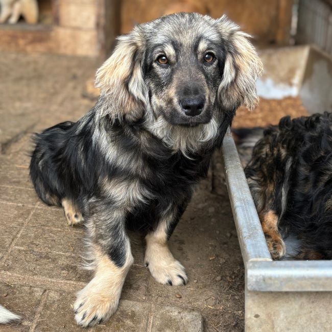 Dieser hübsche kleine Kerl mit den tollen, flauschigen Ohren hielt sich während unseres Besuchs zunächst in der Hütte auf. AVENUE musste uns erst einmal beobachteten und einschätzen, ob wir es gut mit ihm meinen. Als wir uns ihm zuwandten, nahm er vorsichtig die Leckerlie und kam rasch aus seinem sicheren Versteck… das Eis war im Nu gebrochen und schon konnte er unsere Aufmerksamkeit und die Streicheleinheiten genießen. Ab diesem Moment wich er uns nicht mehr von der Seite und blieb ganz unaufdringlich in unserer Nähe.