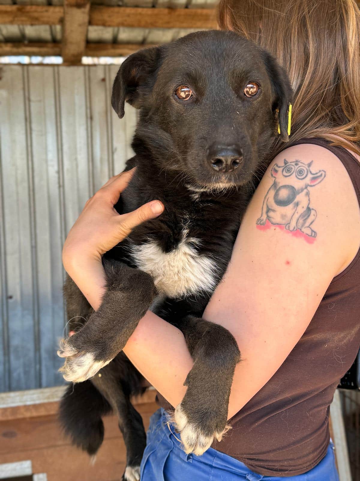 AVIANA ist eine sehr nette junge Hündin, die wir erst gar nicht bemerkten, weil sie sich nicht aus ihrer Hütte heraustraute. Ein Rüde in ihrem Kennel lässt sich nicht ans Futter, so dass AVIANA aktuell (Ende März 2024) wirklich nur noch Haut und Knochen ist. Für sie ist es 5 vor 12. Auch ans Wasser wird sie nicht gelassen und hat im Schutze unserer Anwesenheit erstmal ausgiebig getrunken. Sie ließ sich sehr gut überall anfassen und freute sich über unsere Aufmerksamkeit. AVIANA ist menschenbezogen und hat ein sehr angenehmes Temperament.