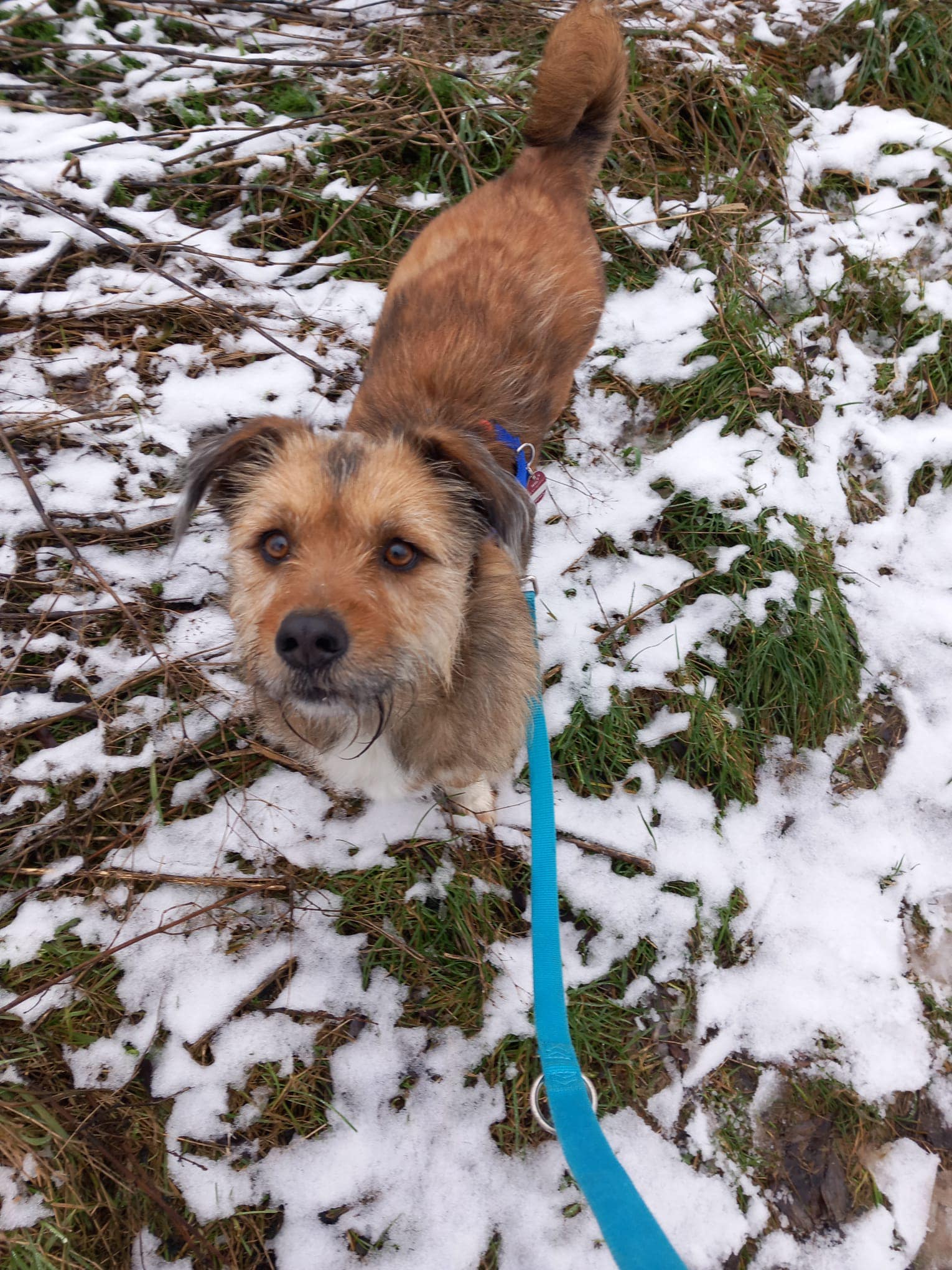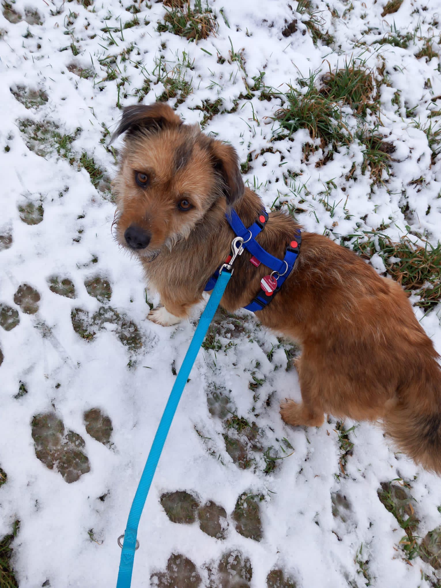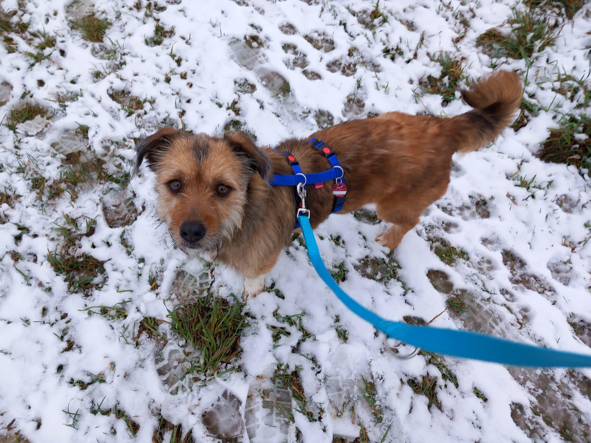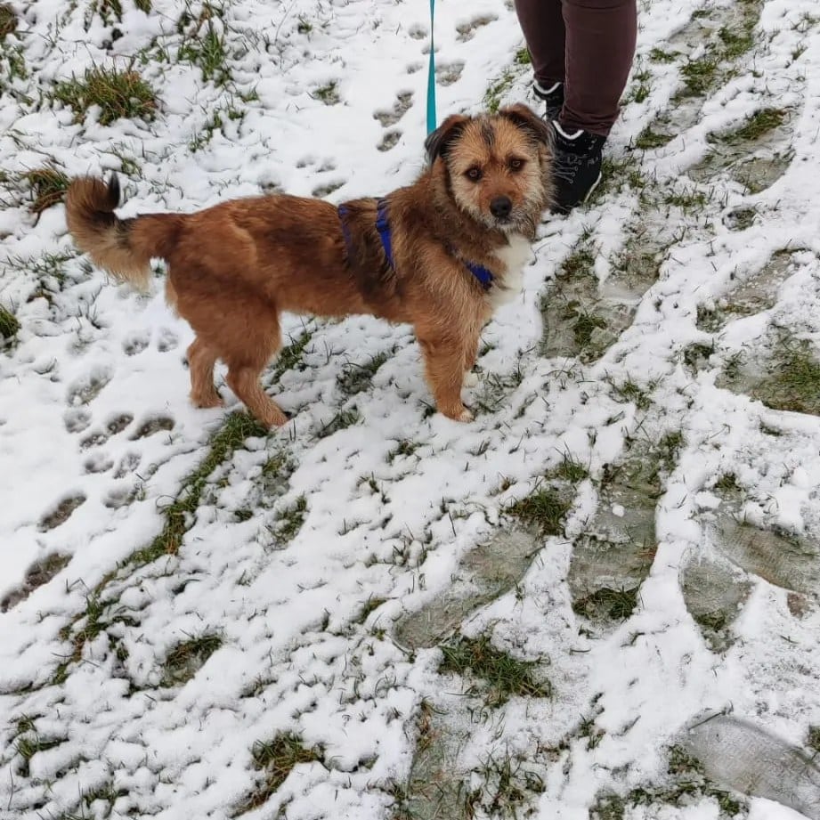 Axel hat sich seit Ankunft bei uns auf Pflegestelle in den letzten Wochen prächtig entwickelt. Anfangs war er sehr ängstlich: Autos, Leine, generell Menschen. Dann ging es auch noch auf Silvester zu und überall hat es geknallt. Das hat er aber alles wunderbar überstanden, geht mittlerweile gut an der Leine, kommt sogar freudig angerannt, wenn man ihm das Geschirr umlegen möchte.