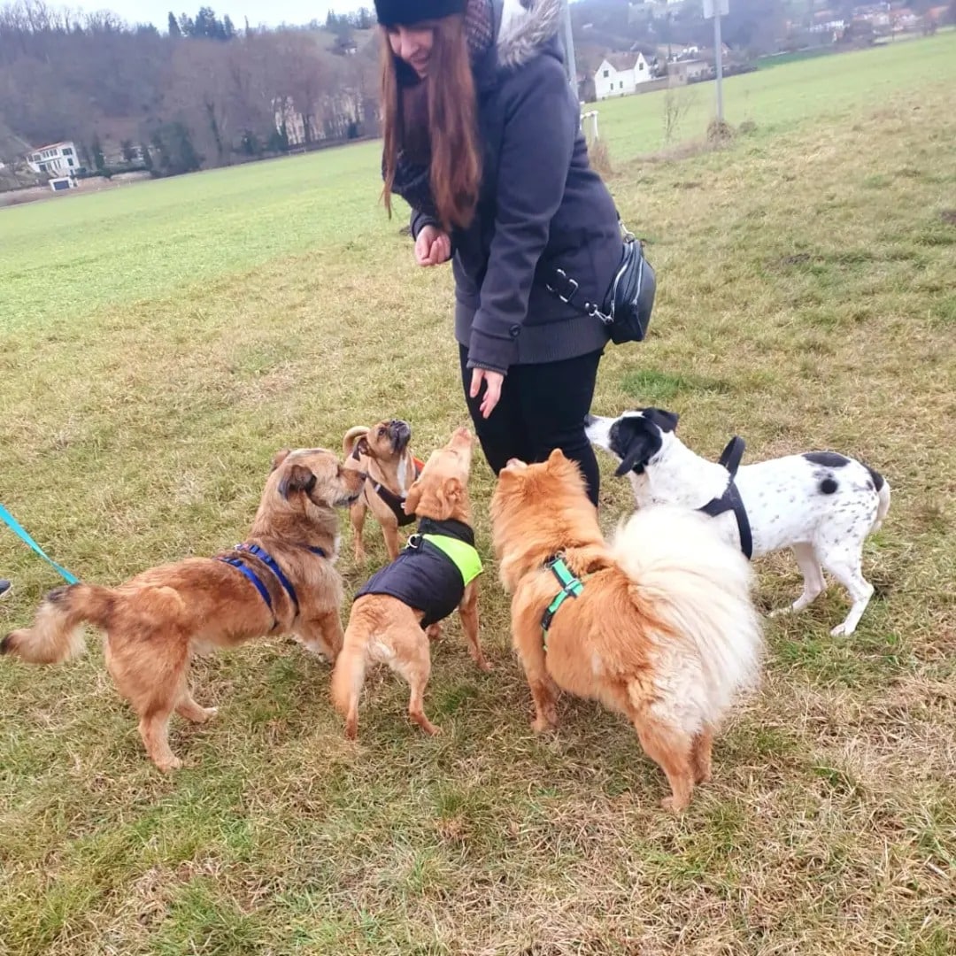Anfangs gab es draußen immer mal Situationen, die ihn verunsichert haben , besonders bei anderen, bellenden Hunden. Nun ist er selbstbewusst und schickt einem Rüpelhund auch mal einen Beller zurück.