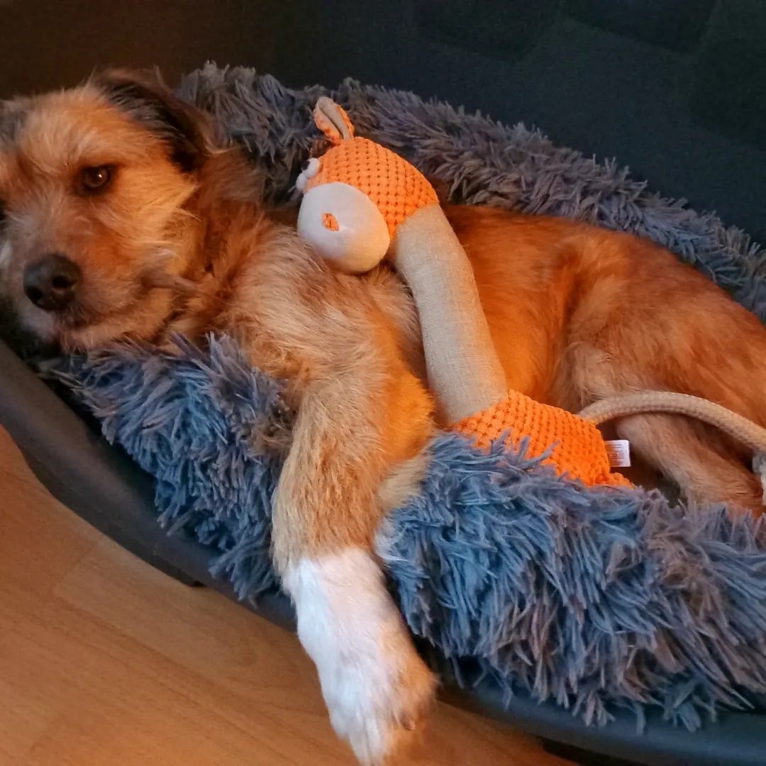 Alleine bleiben funktioniert auch super, er bellt nicht und wartet einfach, bis man nach Hause kommt, da freut er sich dann ungemein. Spielzeug findet er toll, das wird dann rumgeworfen oder damit gekuschelt.