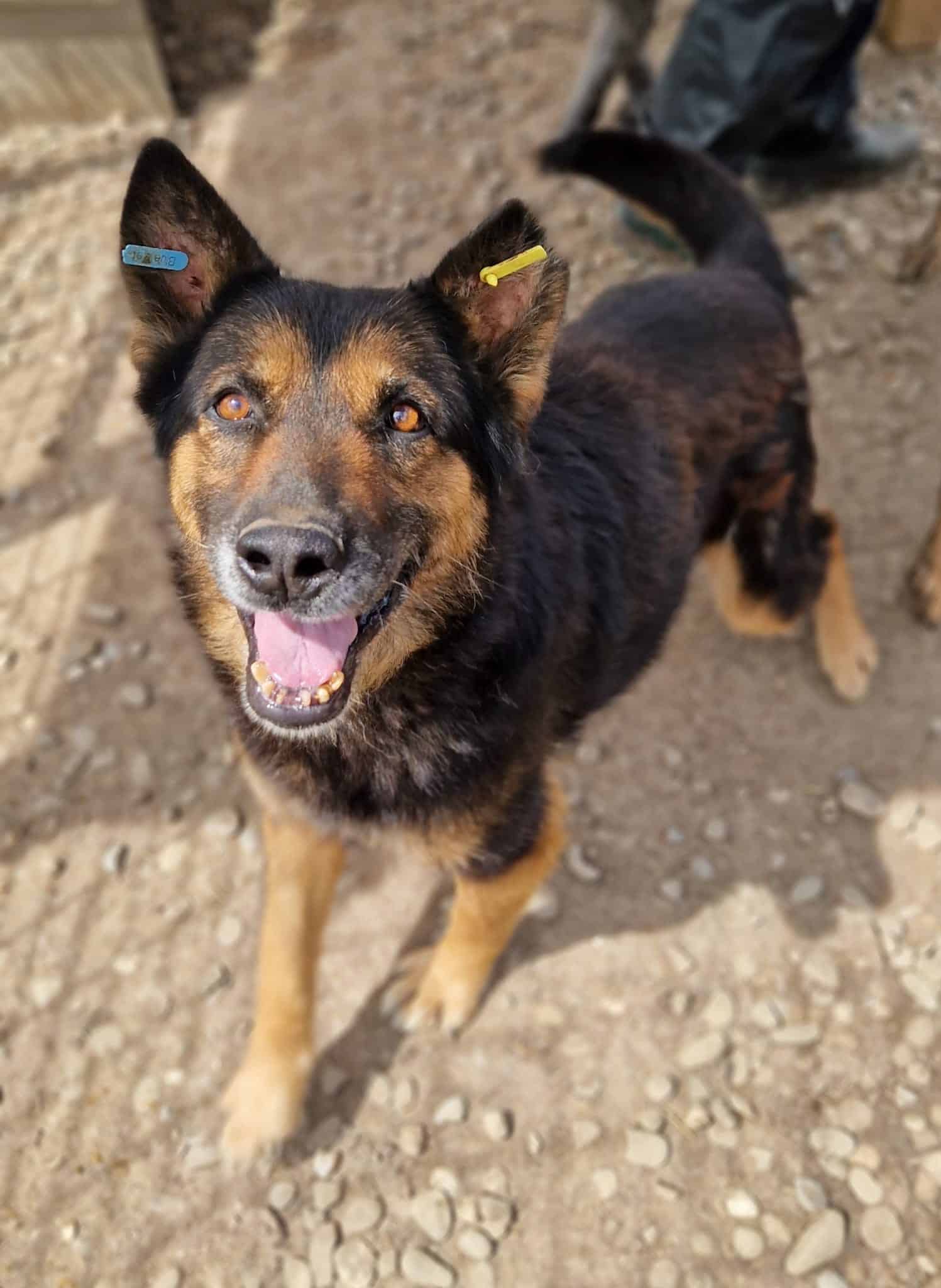 AXERO war aufgeregt über unseren Besuch, denn Menschen kommen sonst nicht in seinen Kennel. Er ist weiterhin zutraulich und lässt sich streicheln. Da wir in seinem Kennel schon einmal Futterneid unter den Hunden feststellen konnten, allerdings zu einer Zeit, wo Futterknappheit herrschte, haben wir keine Leckerlies verteilt. AXERO hat aber natürlich eine Spürnase und roch immer an unseren Taschen und hoffte, es gibt was. Er war trotzdem nicht übergriffig oder sprang uns an.