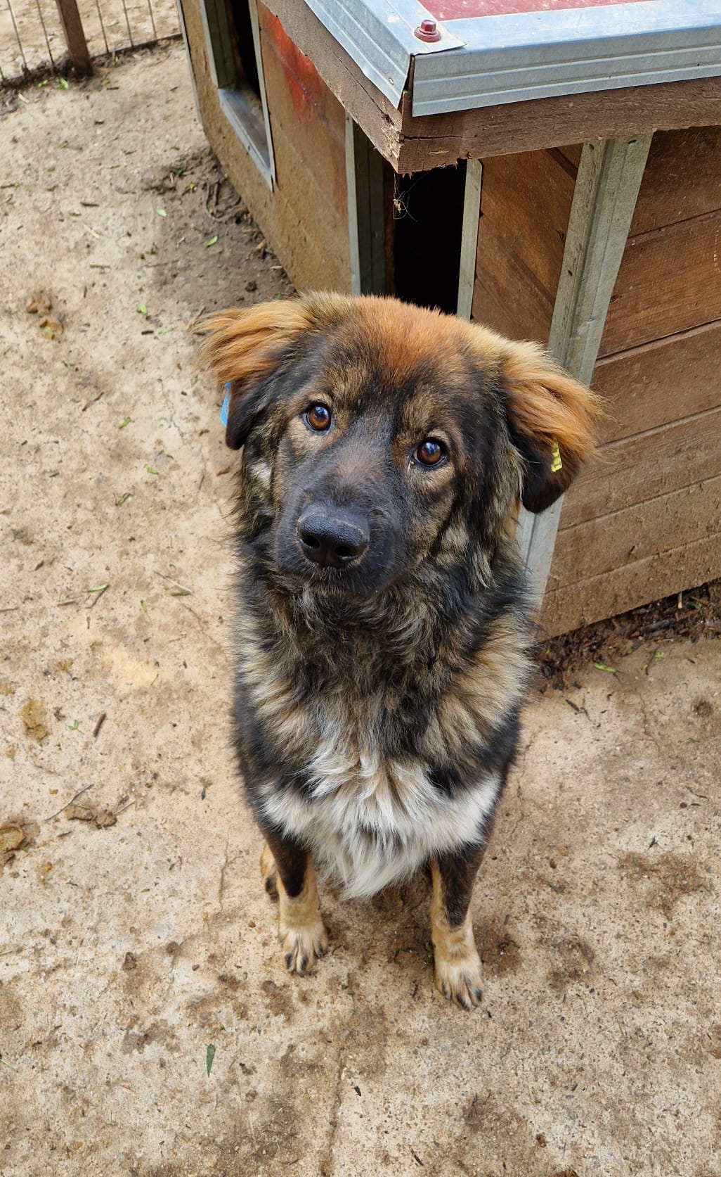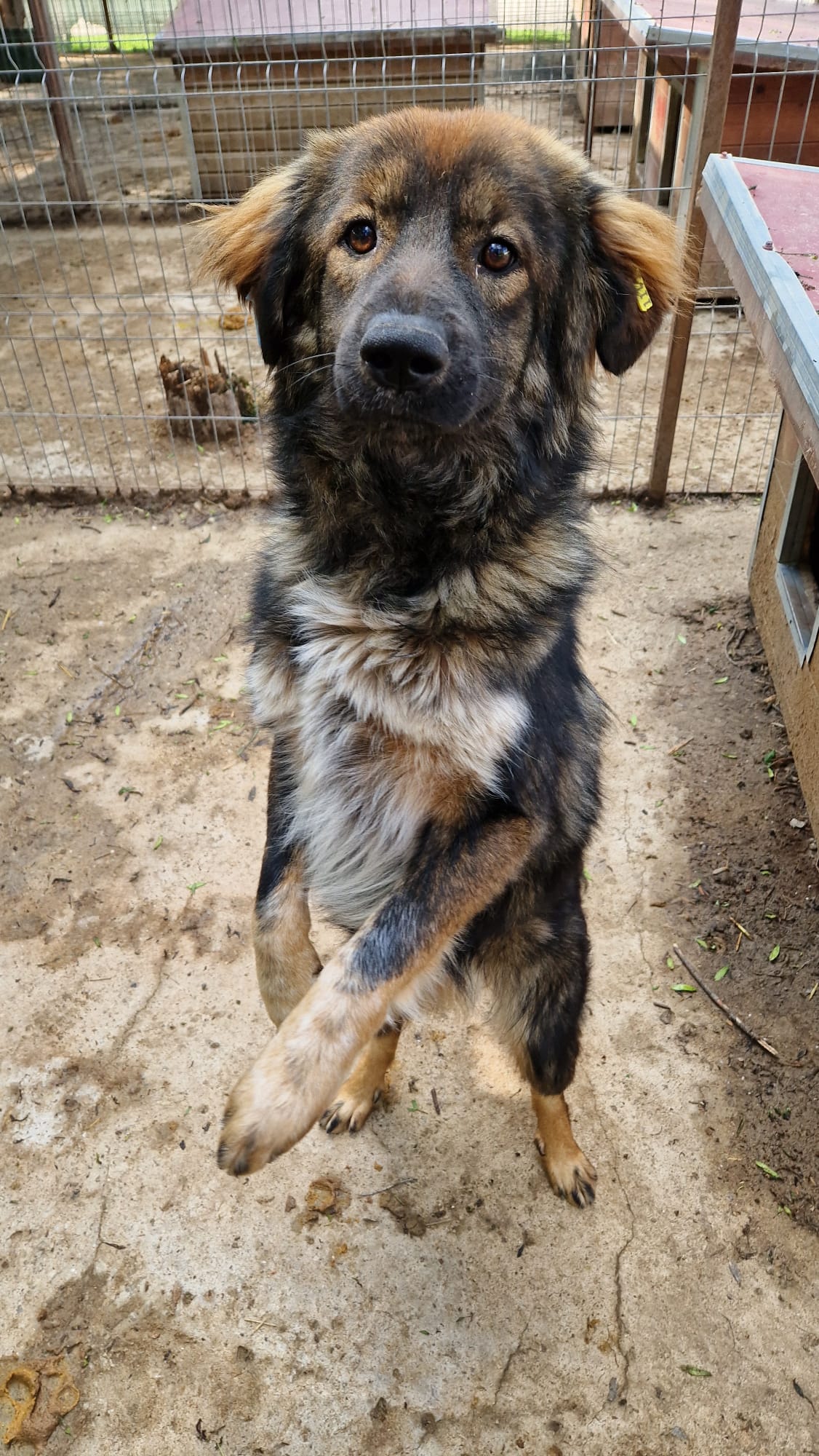 Der freundliche AYDAN war bei unserem Besuch noch recht neu in Bucov und stand neugierig am Kennelgitter, als wir davor standen. Beim Betreten des Kennels zeigte er sich uns gegenüber noch ein wenig unsicher, fast so, als wisse er nicht, was wir von ihm möchten. Nach kurzer Zeit nahm er jedoch unsere Leckerlies gerne aus der Hand, ließ sich gut streicheln und suchte immer wieder den Kontakt. Sobald wir direkt auf ihn zugingen, wich er noch etwas zurück, kam aber immer wieder von allein zurück, gab sogar Pfötchen und verteilte Küsse. AYDAN ist noch recht jung und verspielt, er taut sicher in einer anderen Umgebung schnell völlig auf. Seinen Kennel teilt er sich mit einem großen älteren Rüden, die beiden hatten während unserer Anwesenheit keine Interaktionen miteinander. Wir gehen trotzdem von einer grundsätzlichen Verträglichkeit aus.