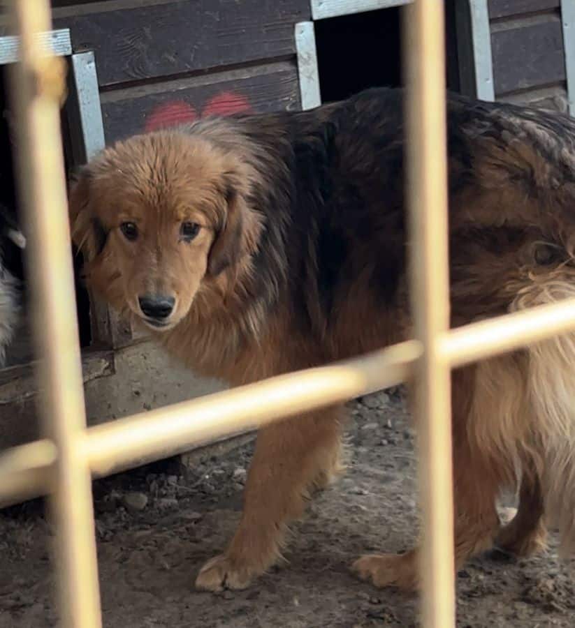AYK – ein wunderschöner Rüde mit seidenweichem Fell – hat sich erfreulicherweise sehr positiv entwickelt. Als wir den Kennel betraten war er zunächst etwas zurückhaltend, taute aber sehr schnell auf und ließ sich überall anfassen und streicheln. Dies schien er auch genießen zu können. Unsere mitgebrachten Leckerchen nahm er aus der Hand. Im Rudel scheint er weiterhin verträglich zu sein.