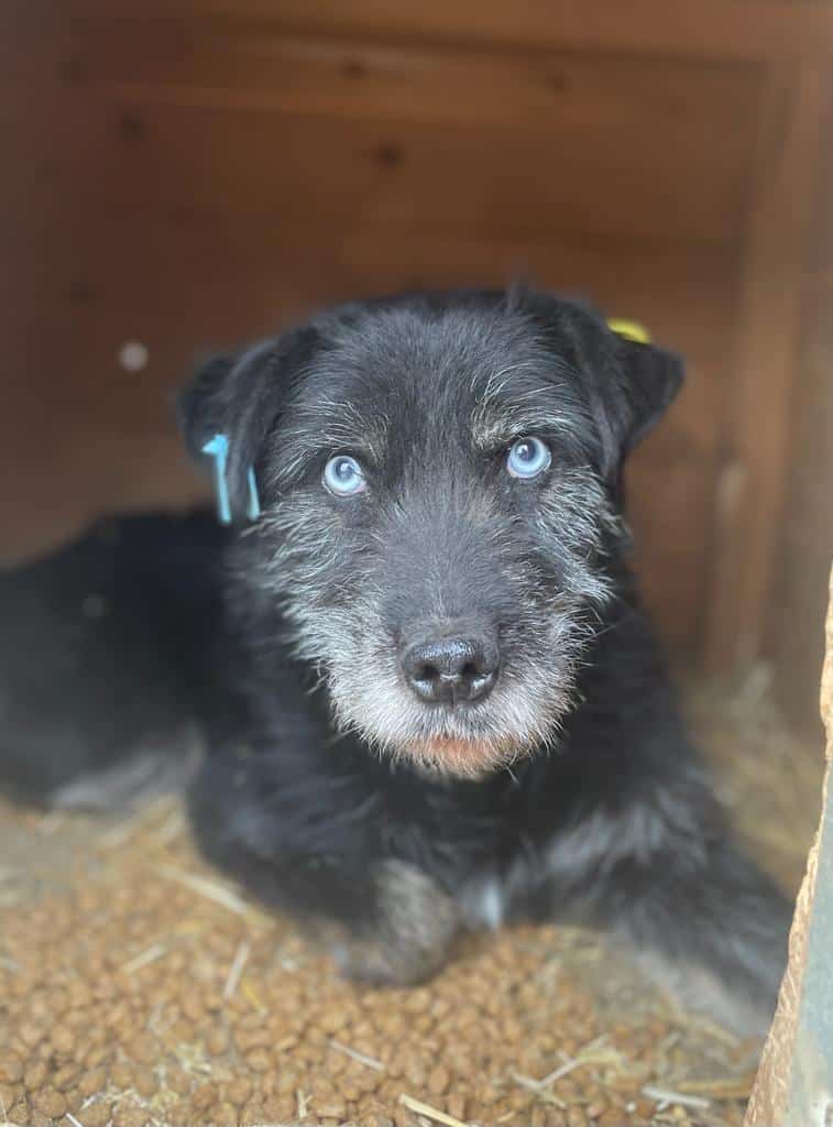 AZULES lag, als wir den Kennel betraten, in seiner Hütte und war an uns zwar interessiert, wollte aber erst mal nicht aus der Hütte kommen. Als wir ihn dann mit unseren Leckerchen lockten, kam er gerne zu uns und holte sich diese und seine Streicheleinheiten bei uns ab.
