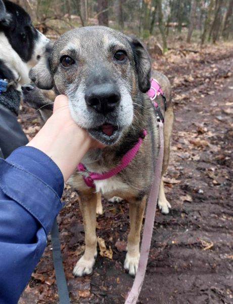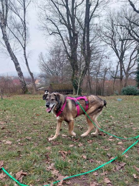 der Ende November 2024 auf seine Pflegestelle reisen durfte. Obwohl er zuvor 6 1/2 Jahre, also fast sein ganzes Leben, im Shelter verbringen musste, hat er sich schnell eingelebt. Baako ist im direkten Kontakt neugierig und gut anfassbar. Wenn er sich bedrängt fühlt oder sich erschrickt, dann reagiert er manchmal unsicher. Kinder im Haushalt sollten daher schon etwas größer sein. Unangenehme Prozeduren wie Untersuchungen beim Tierarzt, sich baden lassen oder Ohren reinigen macht er problemlos mit. Zuhause hält er sich gerne in der Nähe des Menschen auf und wird auch gerne gestreichelt. Baako kann in Hundegesellschaft alleine bleiben, fährt gut im Auto mit und ist stubenrein. Baako geht gerne spazieren und läuft gut an der Leine mit. Wenn sich die Möglichkeit auf eingezäuntem Grundstück bietet, dann rennt und spielt er auch trotz seines Alters noch gerne. Baako ist verträglich und kann sowohl Zweit- als auch Einzelhund werden. Katzen kennt er bisher noch nicht, das könnte bei Bedarf getestet werden.