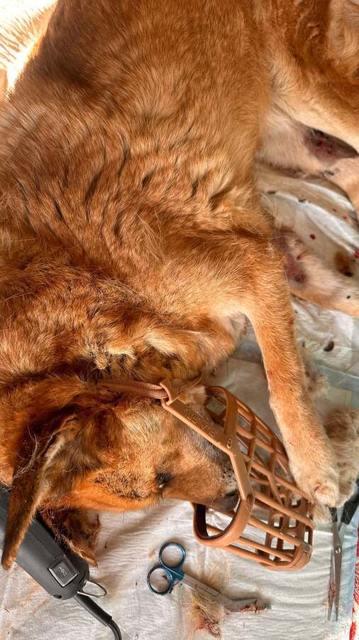 BABETT wird weiterhin im Vethouse behandelt. Sie ist übersäht von Bisswunden und ein Teil ihres Ohrs fehlt. Durch leichtes Brummeln zeigte sie uns, dass sie uns nicht in ihrer Nähe haben möchte. Die mitgebrachten Leckerlies hat sie dann doch gerne genommen. Weiter haben wir uns ihr nicht genähert.