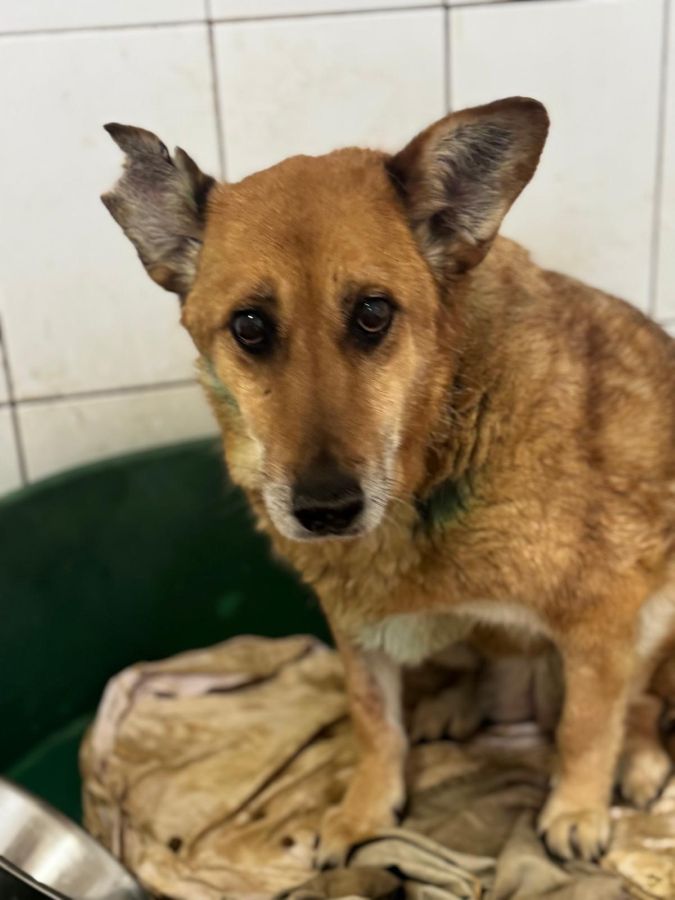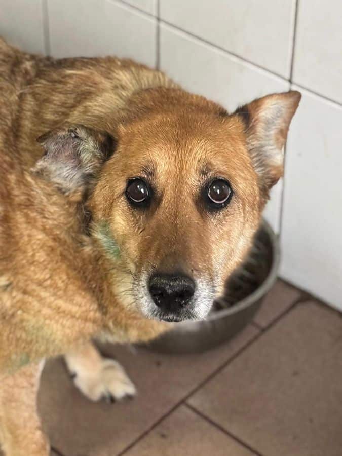 Hundeoma BABETT wurde schwer gebissen. Sie trägt einige Verletzungen davon. Ihre Wunden wurden von unserer Tierärztin und ihrem Team medizinisch versorgt. Bei dem Versuch ihr zu helfen, war sie zuerst überfordert mit der Situation und reagierte mit abschnappen. BABETT hat die letzten 5 Jahre im Shelter verbracht, Menschen sind ihr fremd. Es braucht viel Geduld, Einfühlungsvermögen und Zeit, damit sie Vertrauen fassen kann.