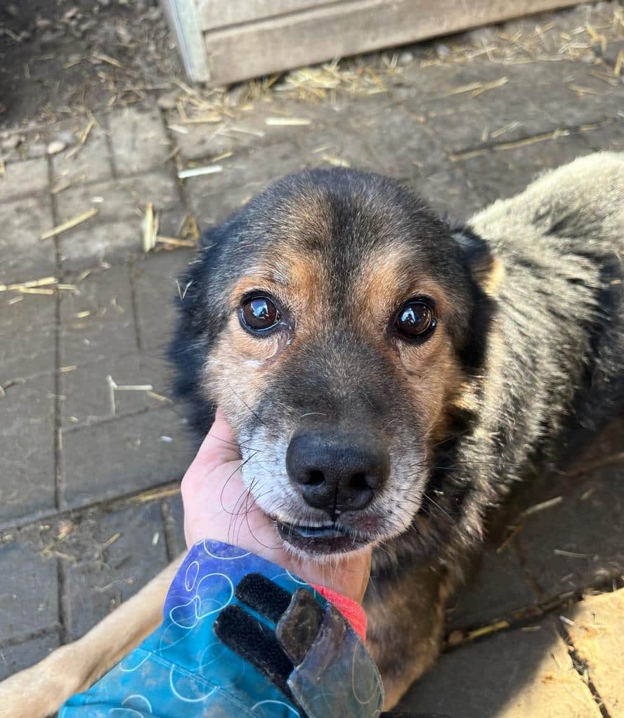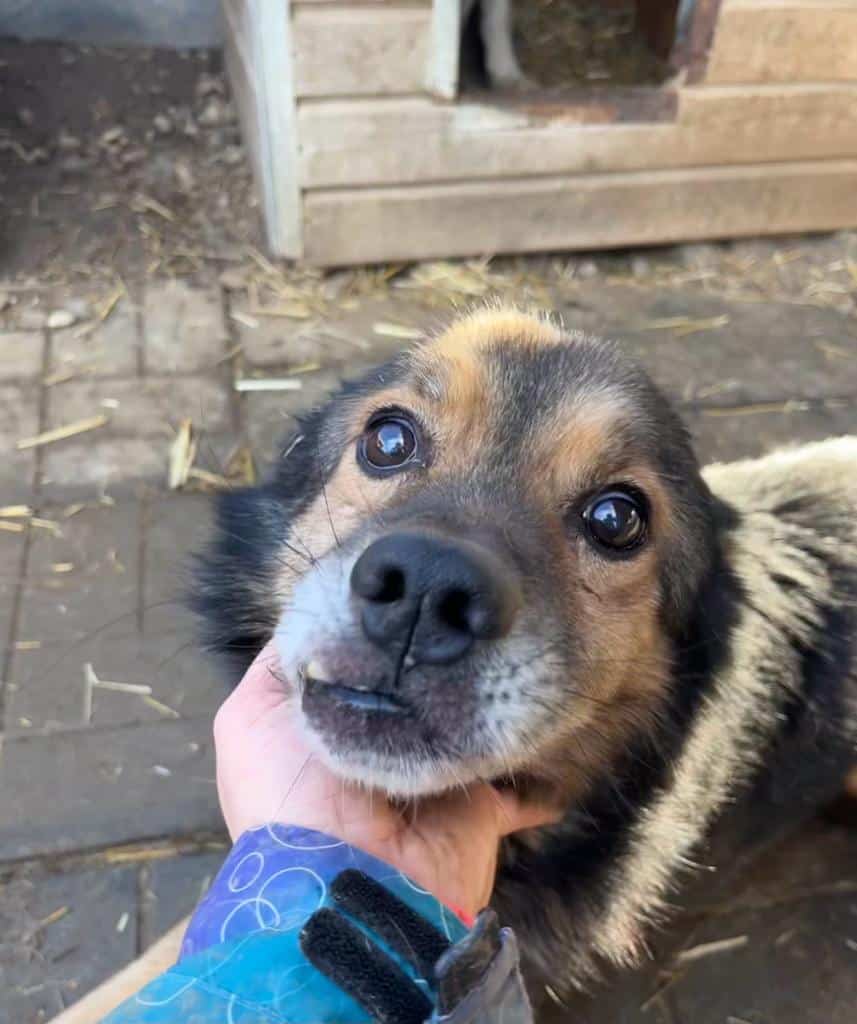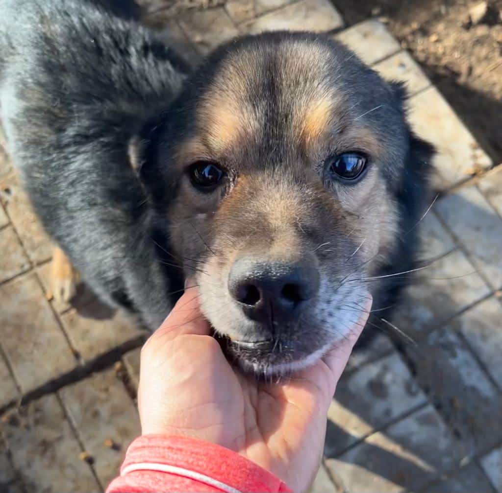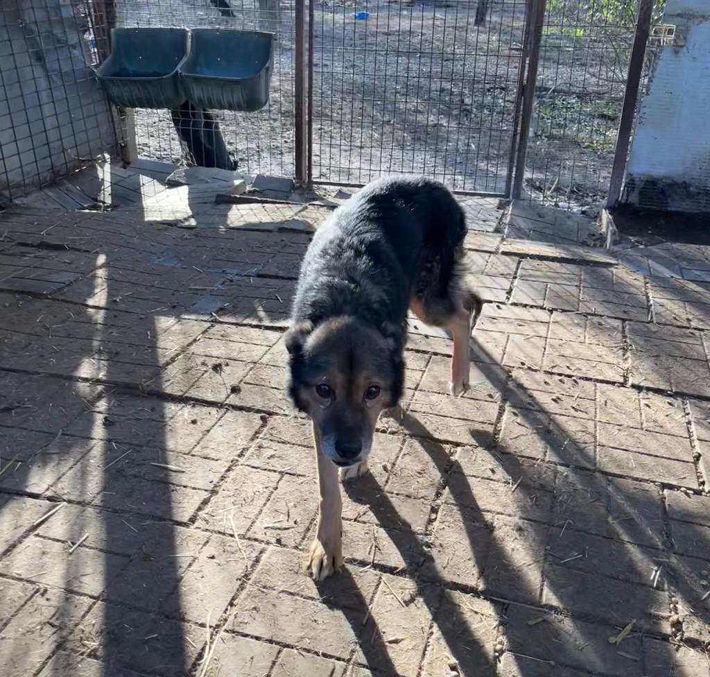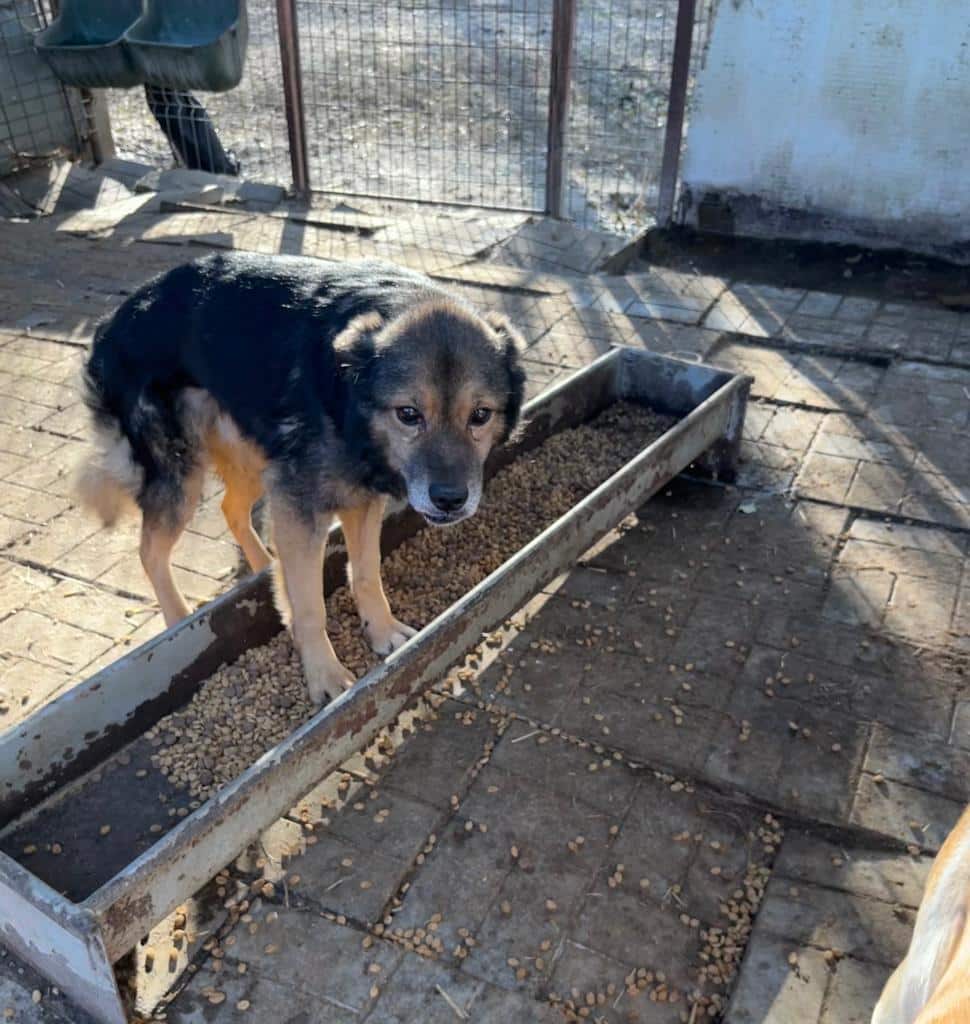 Der nette BABU lag fast die ganze Zeit im Futtertrog. Hier ließ er sich überall von uns anfassen. Er war bei unserem Besuch noch nicht lange im Shelter und mit der Situation noch etwas überfordert. Als er einmal aufstand konnten wir sehen, dass er nicht gut läuft. Er scheint Probleme mit der Hinterhand zu haben und bewegt sich vielleicht auch deswegen weniger.