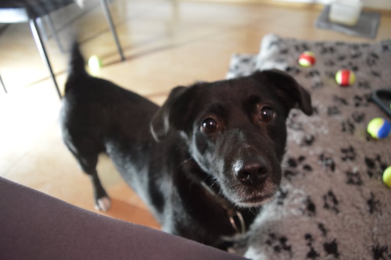 Badrya ist eine kleine (16kg), lustige Rennsemmel. Sie sieht aus, wie ein Labrador im Kleinformat.