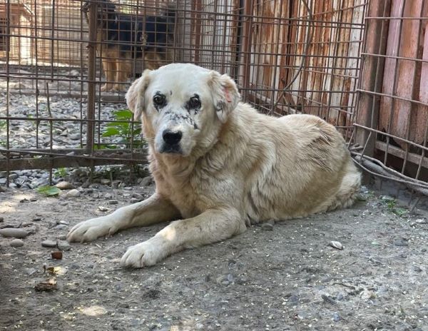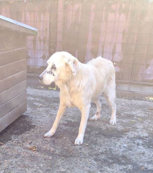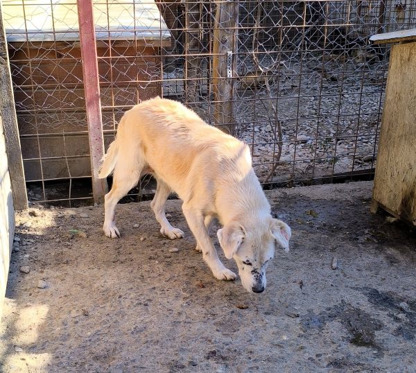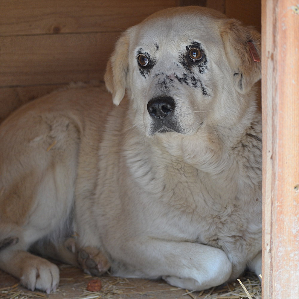 BÄR begrüßte uns auf seine ruhige und zurückhaltende Art, als wir den Kennel betraten. Er war uns gegenüber zwar unsicher, aber in keiner Situation panisch. Schnell hat er gemerkt, dass wir ihm nichts Böses wollen und nahm die Leckerchen aus der Hand. Dabei konnten wir ihn auch an seiner vernarbten Schnauze berühren. Auch beim Anfassen blieb er ruhig und zeigte keinerlei Flucht- oder Abwehrverhalten. Wir sind uns sicher, dass Bär mit Geduld, viel Liebe und einem sicheren, entspannten Umfeld ein wunderbarer Wegbegleiter wird. Unser Herz hat er schnell erobert, wann erobert er deins?