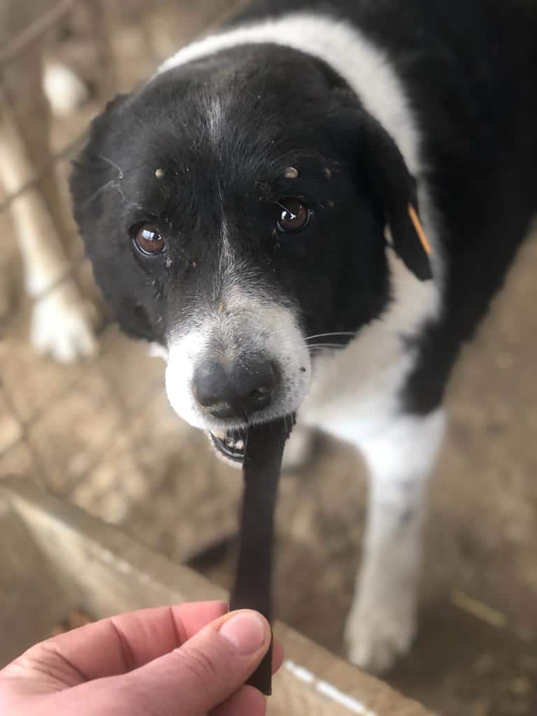 Die schüchterne BAFFIE beobachtete uns erstmal aus der Ferne, doch nach ein paar Minuten traute sie sich zu uns und nahm Leckerlies aus der Hand. Für mehr fehlte ihr leider noch der Mut. Wir wünschen uns daher Menschen mit genügend Hundeerfahrung für sie, die bereit sind, Zeit und Geduld für die schüchterne Hündin aufzubringen. Zudem würde ein souveräner Ersthund ihr bei der Eingewöhnung sicherlich helfen.